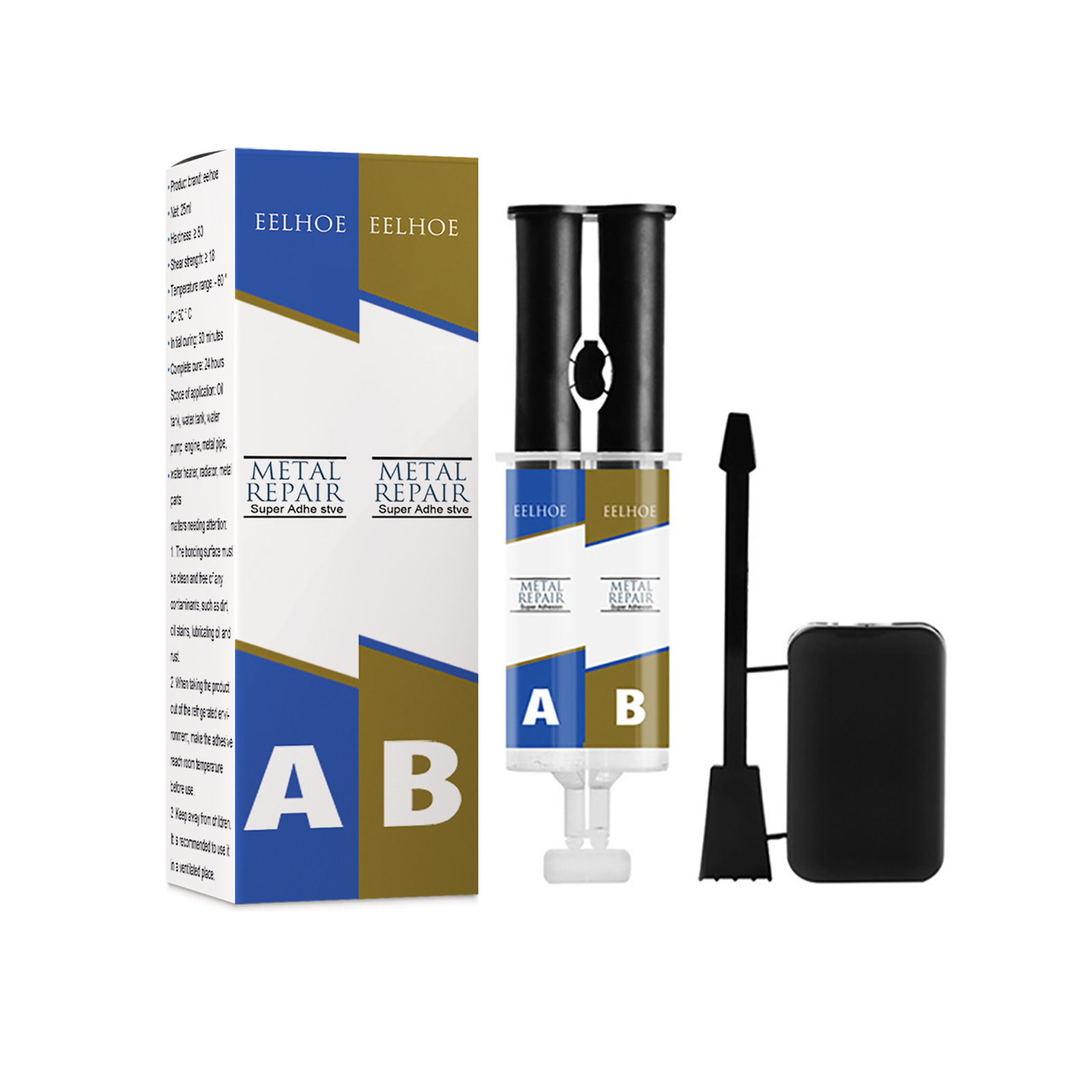 Our AB casting boxes contain epoxy resin, silica powder and iron powder. It can be used for all kinds of metal castings, parts, equipment defects, wear, scratches, corrosion, fracture repair. Its use is simple: first wipe the area to be applied, push the push rod out of the glue with your hand, stir with a scraper to make the glue set more easily, apply the glue to the patch, and after a while, it will become very strong and can be dealt with a day later. And can withstand high and low temperatures, four seasons available.