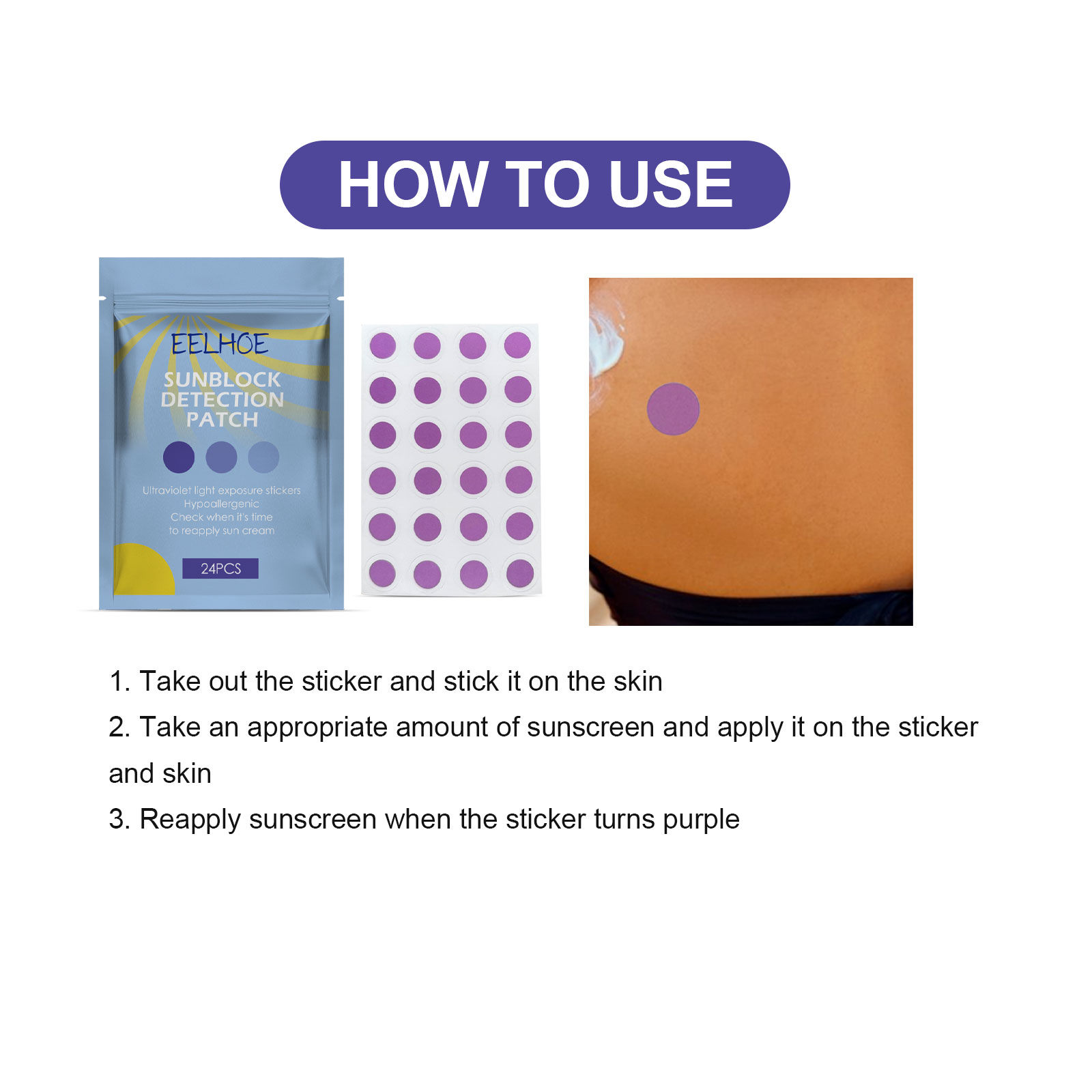 Our UV protective stickers contain light powder, low sensitivity adhesive. It protects the skin from sunburn and protects the skin from UV damage. The way to use it is simple: 1. Take out the sticker and stick it on the skin; 2. Apply appropriate amount of sunscreen to the sticker and skin; 3. Reapply sunscreen when the sticker turns purple. Uv protective patches are the easiest and most effective way to protect your skin from harmful UV rays. Remind you to reapply sunscreen.