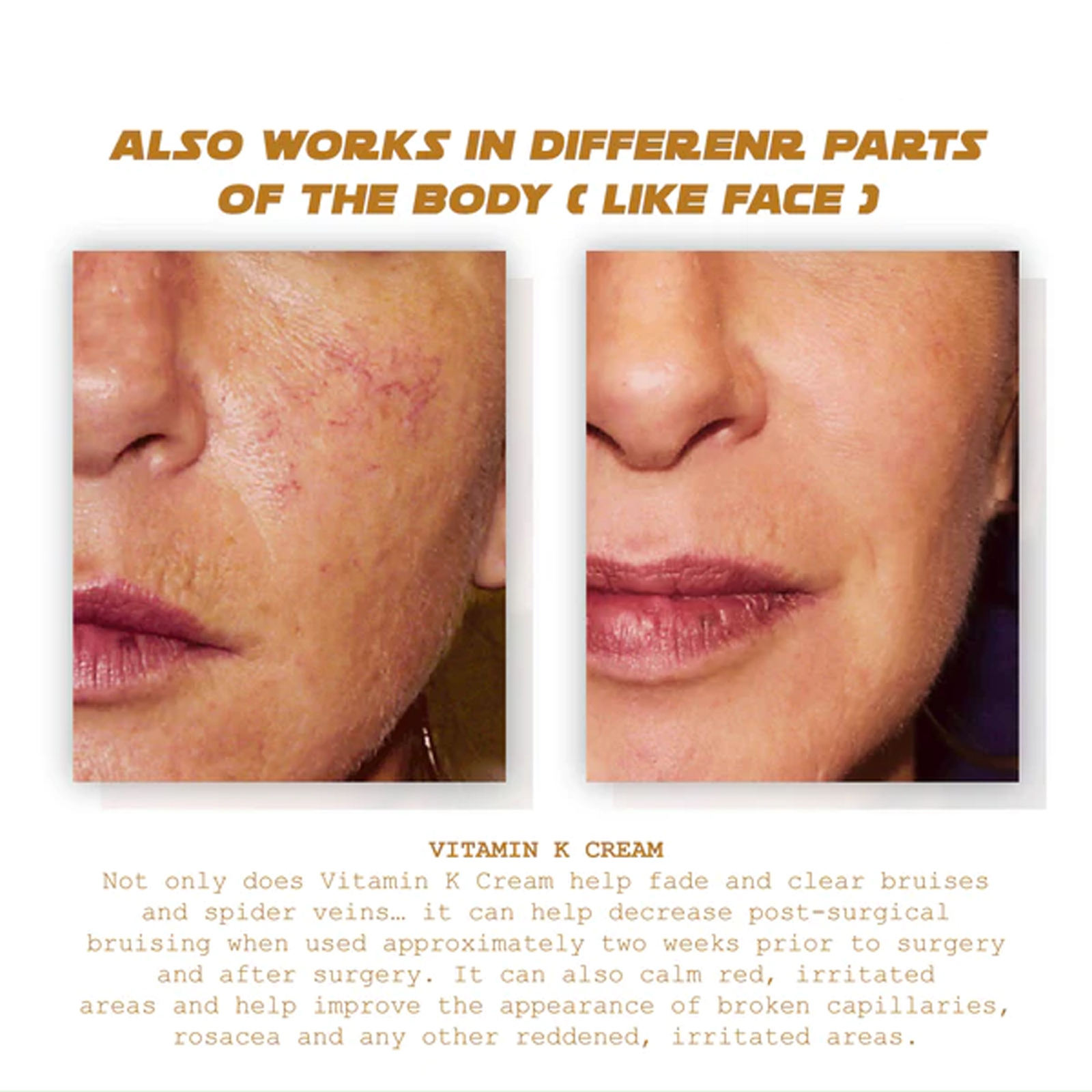 Our varicose venous Massage cream contains shea butter, vitamin K, ginger extract. It can not only help to fade and remove bruises and spider veins. Using it around two weeks before and after surgery can help reduce post-operative bruising. It can also calm redness, irritation areas and help improve the appearance of broken capillaries, rosacea and any other red, irritated areas. Its use method is very simple: 1. Apply appropriate amount of this product to the desired part; 2. Gently wipe, massage until completely absorbed; 3. For best results, use twice daily. Massaging your legs with this cream can help penetrate into the skin, soothe leg fatigue, improve circulation, and relieve varicose veins and spider veins.