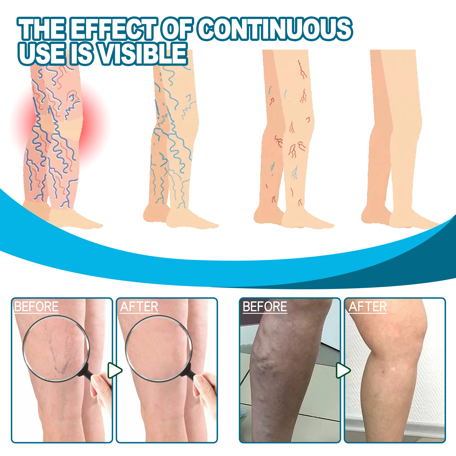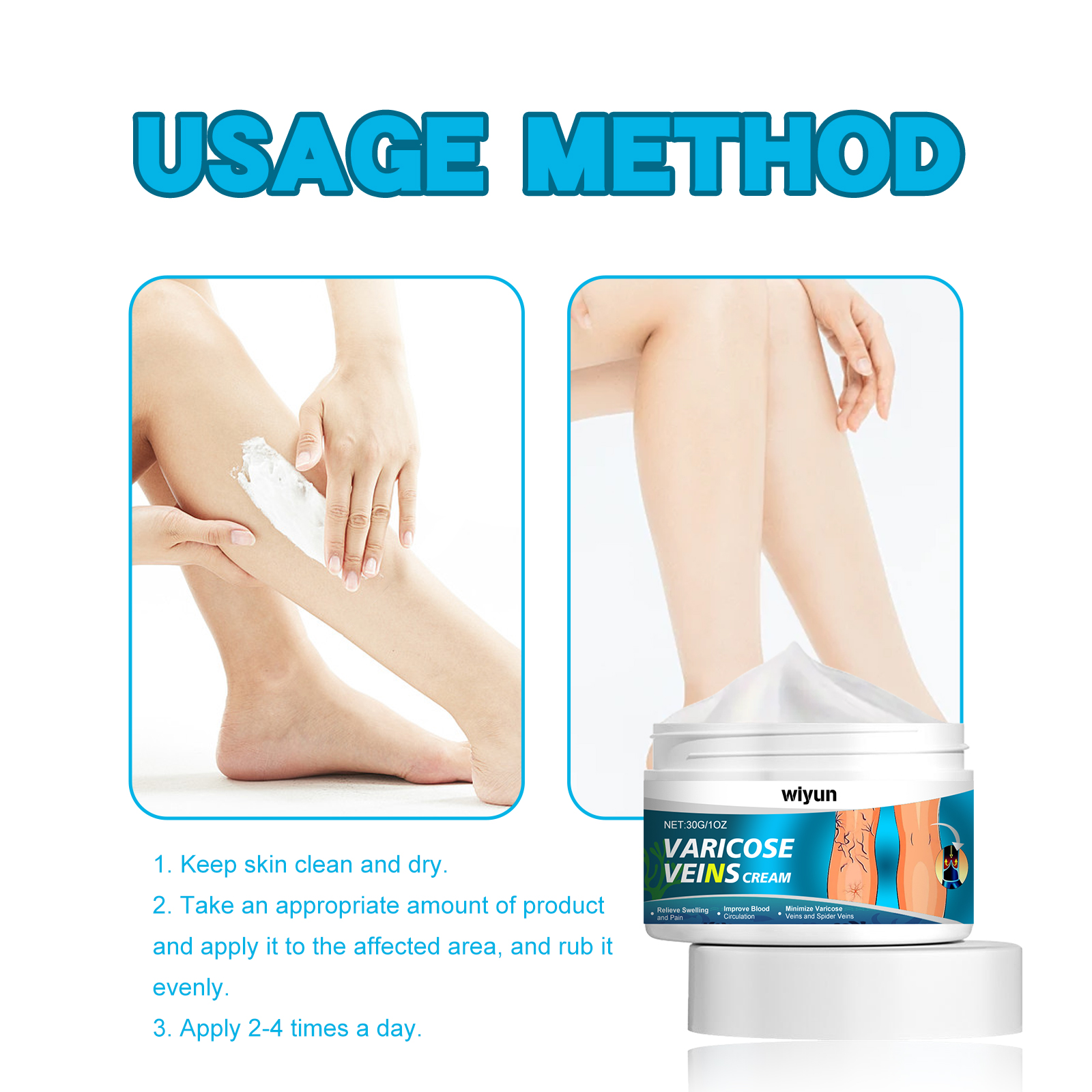 Our Varicose Veins Cream contains Aloe Yohjyu Matsu Ekisu, Olea Europaea (Olive) Fruit Extract, Helianthus Annuus(Sunflower) Seed Oil. It can eliminate varicose veins, reduce discomfort, gradually repair damaged blood vessels and skin tissue, provide you with a comfortable experience, tighten the skin, reduce itching and pain, make the skin smoother, improve appearance and texture, and boost your confidence. Its application method is very simple: keep the skin clean and dry, apply appropriate amount of this product to the affected area, rub evenly, use 2-4 times a day. It nourishes the skin and makes it look smoother, firmer and more elastic.