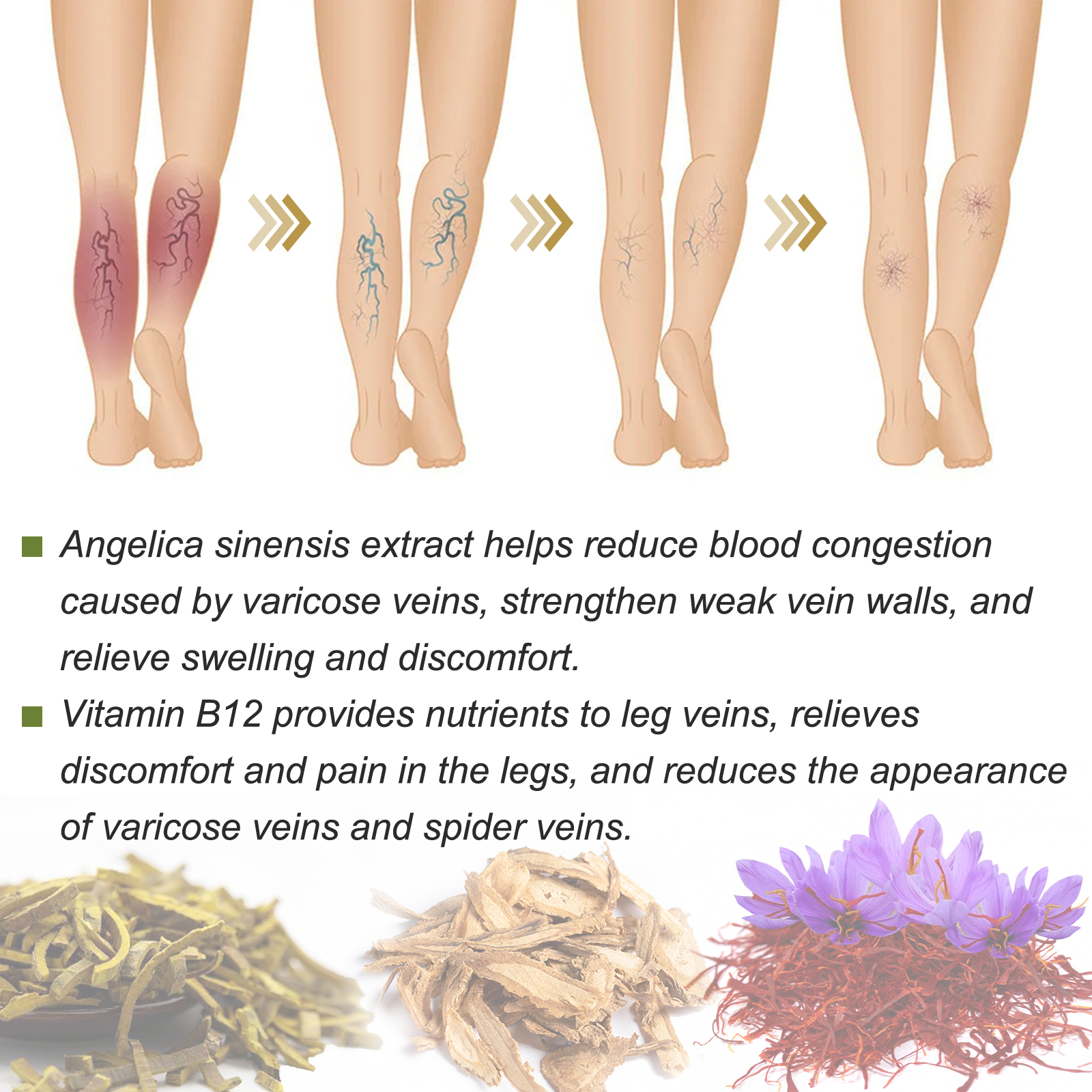 Our intravenous cream contains vitamin B12 and Phelloderma extract. It can reduce blood congestion caused by varicose veins, strengthen weak vein walls, and relieve swelling and discomfort. Its application method is very simple: 1. Clean and dry the skin of the legs with soapy water. 2. Apply proper amount of cream to the skin. 3. Gently massage your legs and feet with your hands in circular motions. 4. Use once every morning and evening for better results. And can effectively eliminate varicose veins, relieve itching and pain.