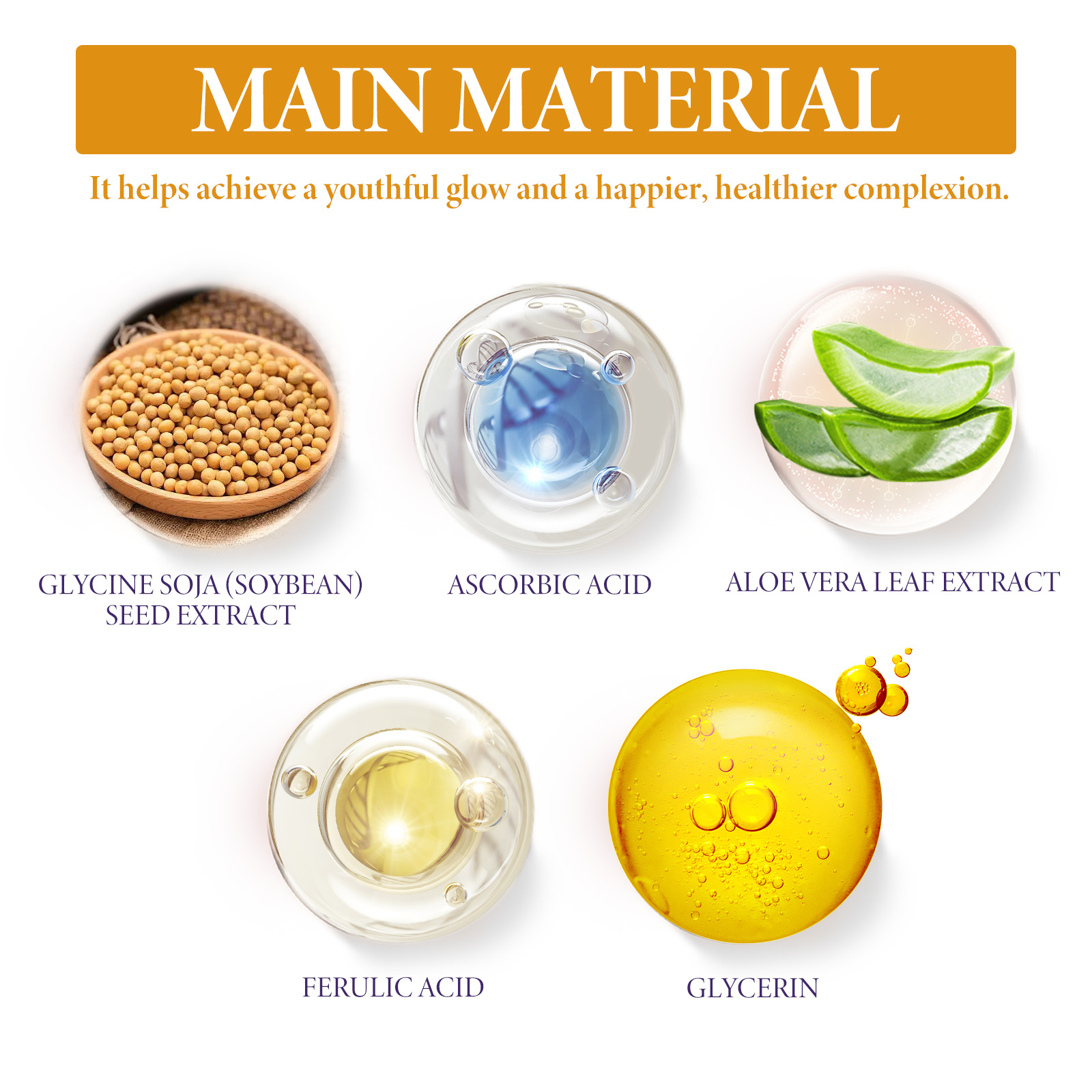 Our Vitamin C Anti-Aging Serum contains Ascorbic Acid, Aloe Vera Leaf Extract, Glycine Soja (Soybean) Seed Extract. It can increase the production of collagen, but also reduce fine lines and wrinkles, improve skin texture, tighten the skin around the eyes, and lighten the complexion. Its use method is very simple: after cleansing and toning, take appropriate amount of essence evenly apply to the face skin, gently massage with the hand to absorb. It fights the signs of skin aging, reduces the appearance of fine lines and wrinkles, deeply moisturizes the skin, reduces dryness and roughness, and keeps the skin hydrated.