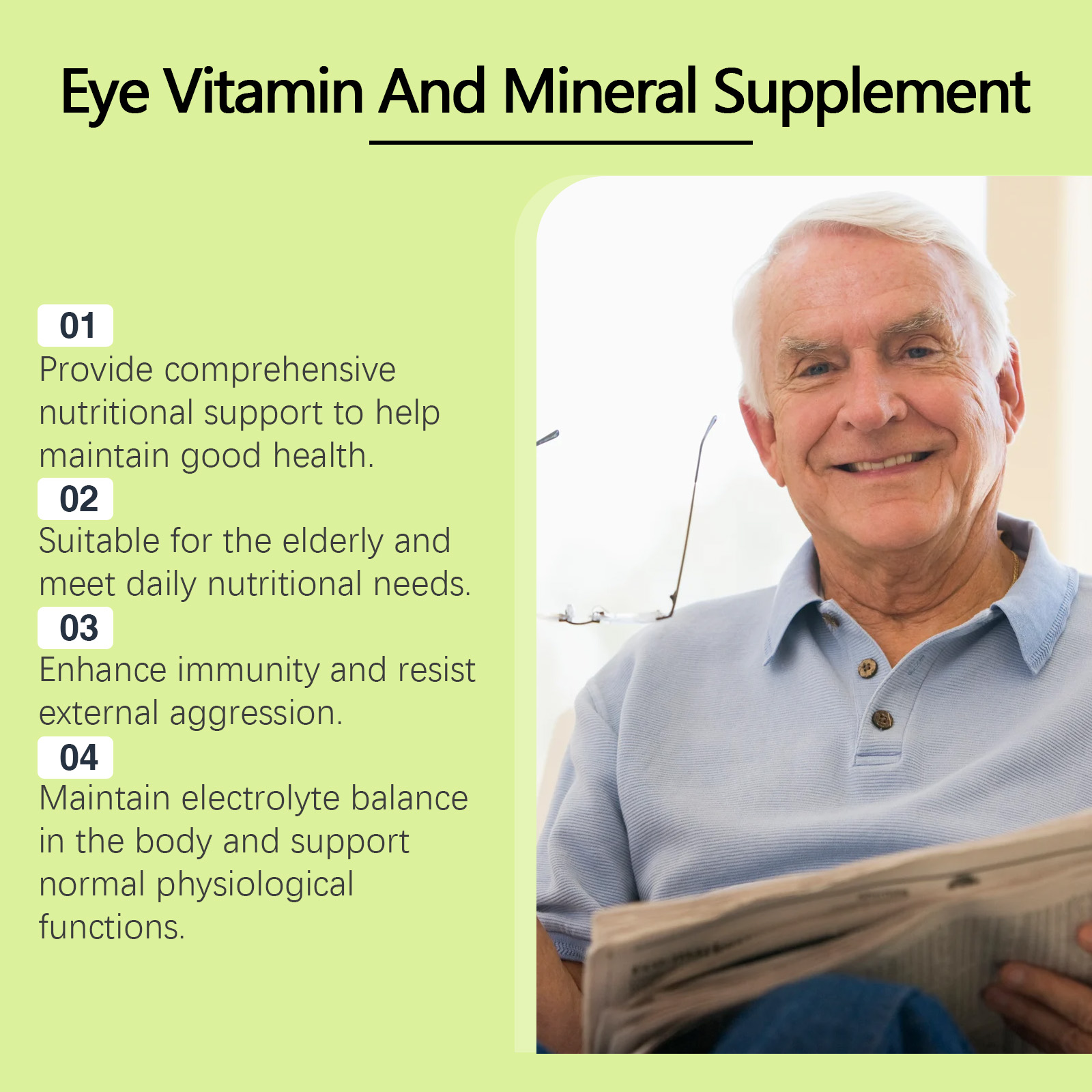 Our vitamin and mineral supplement capsules contain glycerin and vitamin C. It can keep eyesight healthy and reduce eye strain. Its use is very simple: 2 times a day, 1 to 2 capsules each time. It can maintain electrolyte balance in the body and support normal physiological functions.