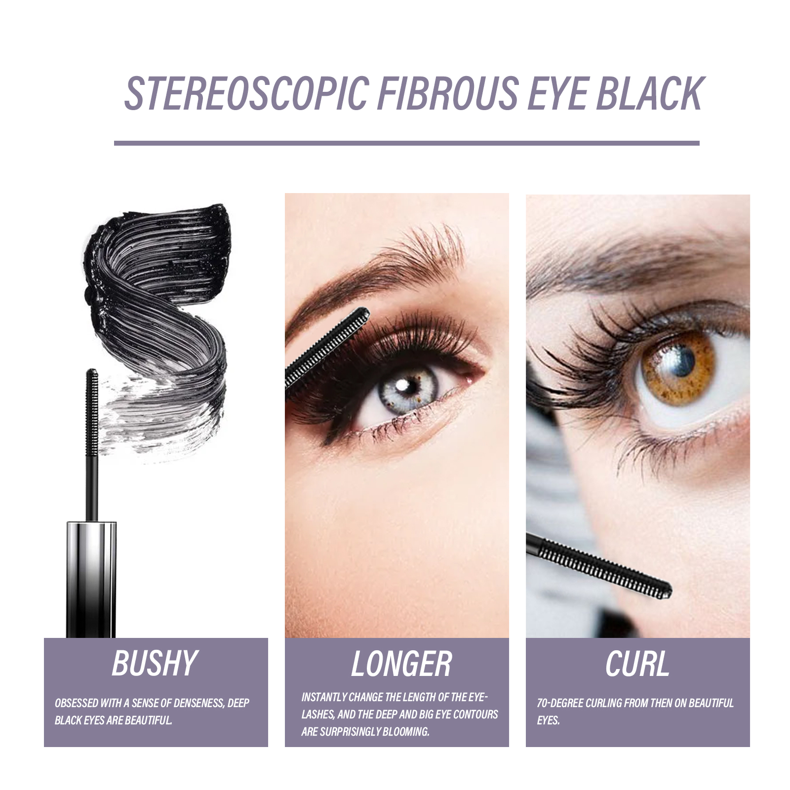 Our curling mascara contains Brazilian palm wax and stearic acid. It can change the length of the eyelashes in an instant, and the deep and large outline of the eyes will bloom surprisingly; Volumizing and curling, waterproof and slender, thick makeup, not easy to smudge. Its use is simple: use an eyelash curler to curl your lashes from the base to the top; Apply with a mascara brush along the root of the eyelashes, which can be superimposed 3-5 times to increase the length of the eyelashes; Then use the brush head to brush the lower lashes one by one to enlarge the eyes. Meet your different makeup needs, make deep eyes more beautiful and moving.