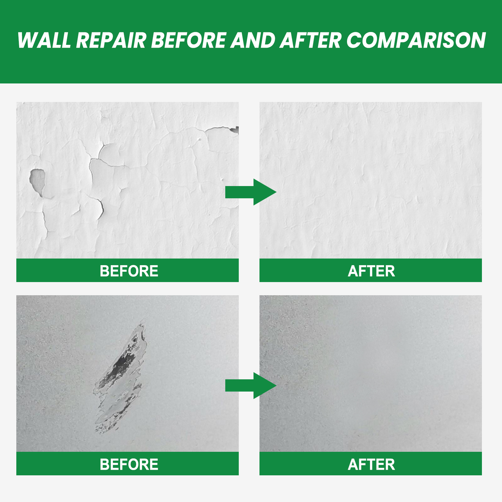 Our wall repair paste contains calcium carbonate and calcium oxide. It can help you say goodbye to unsightly cracks, holes and blemishes, covered with smudged graffiti, and get a smooth and clean wall; Waterproof, crack resistant, alkali resistant, mildew resistant, fast drying, environmental protection. Its use method is very simple: remove wall residue; Apply appropriate amount of repair agent to the affected area; Scrape with a scraper until evenly distributed; Allow to dry and smooth the walls. The wall repair paste is delicate and smooth, with strong adhesion after repair, firmly combined with the wall, durable as new, easy to use, whether it is a small nail hole or a large crack, it can be easily repaired without leaving any trace.