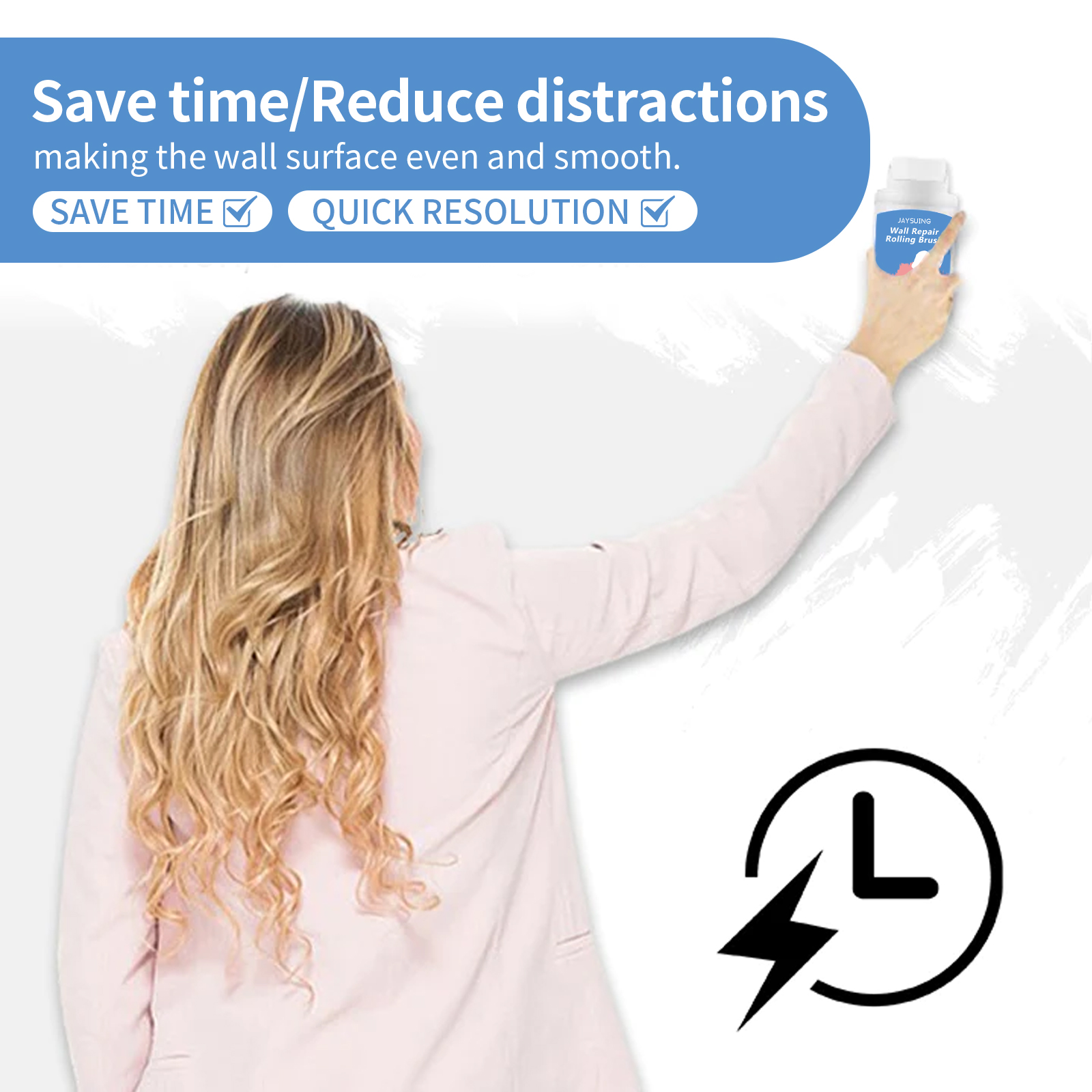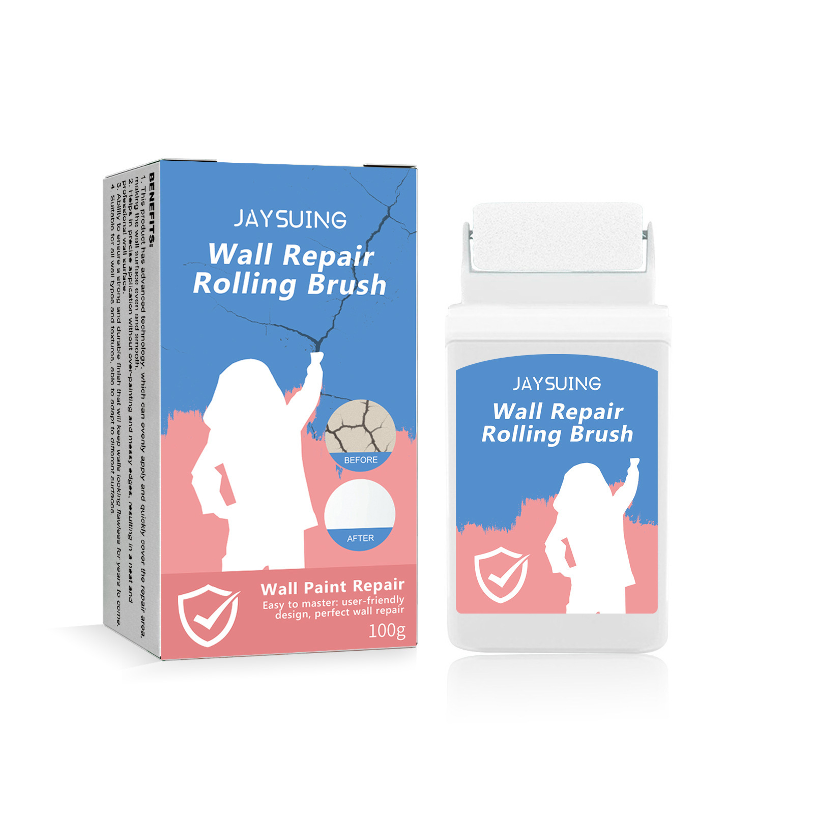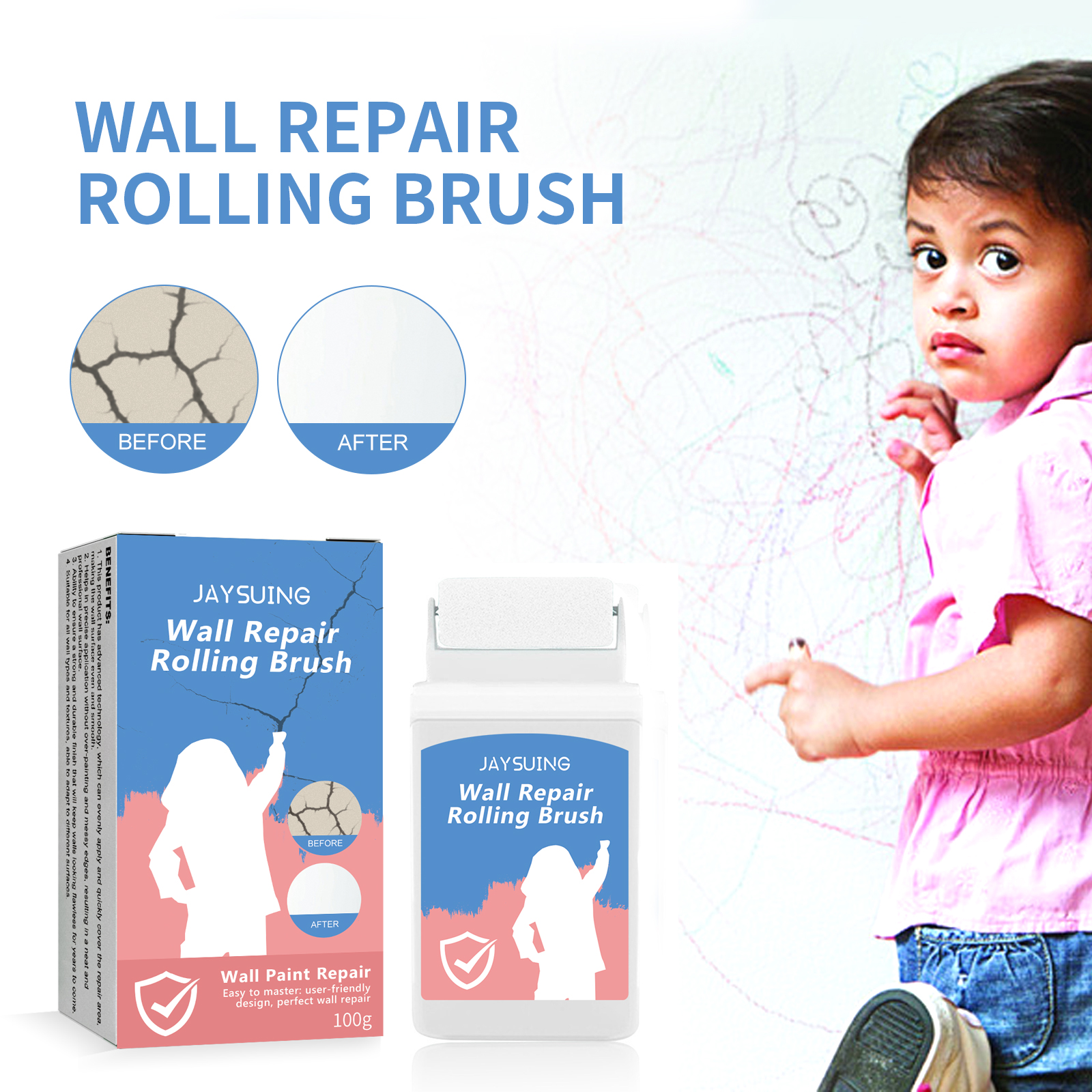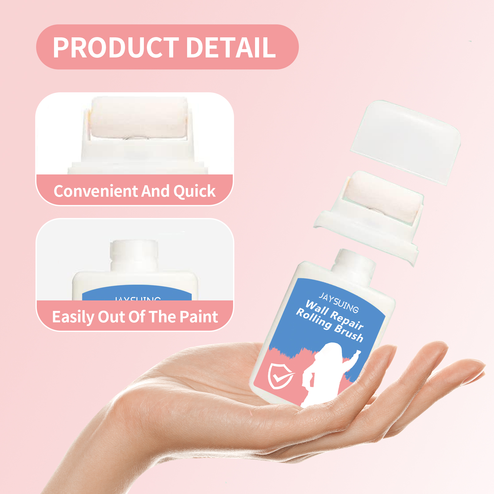 Our wall rollers contain lime, latex and stabilizers. It saves time/reduces distractions and makes the walls even and smooth. Its application is simple: To remove dust and floating powder from the damaged surface, apply an appropriate amount of the product evenly to the damaged surface and let it dry. Scientific ratio, green environmental protection, cost-effective, environmentally friendly wall maintenance choice.