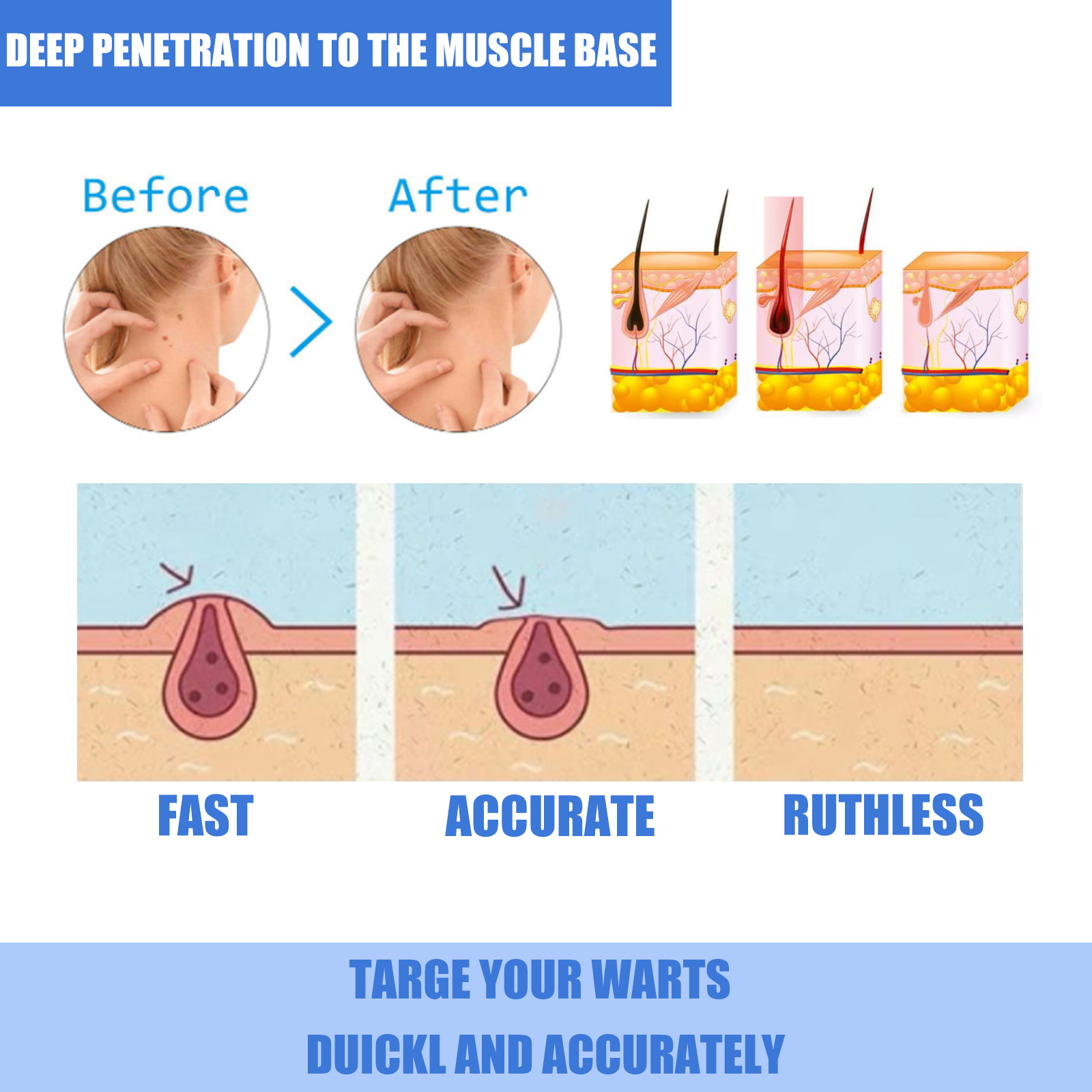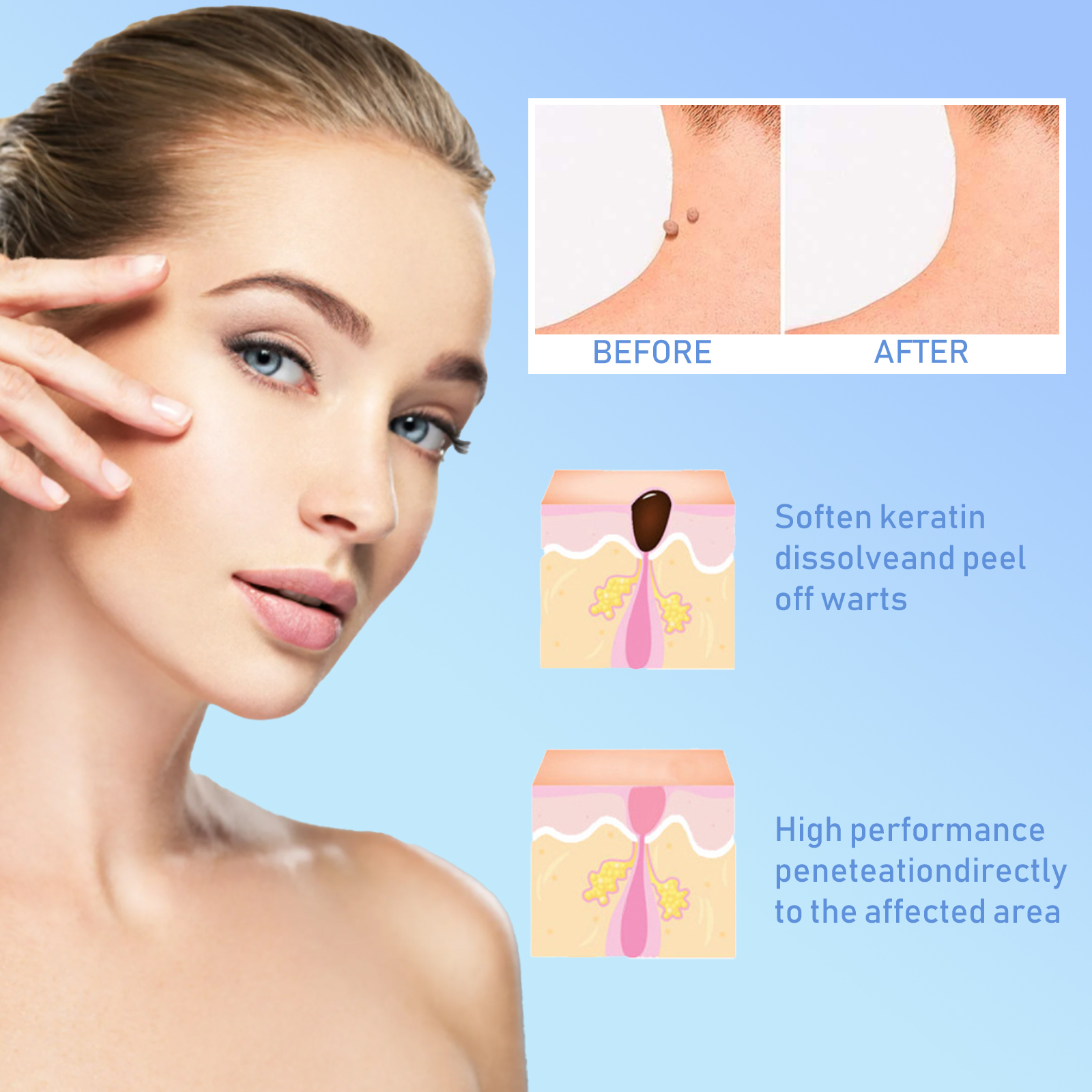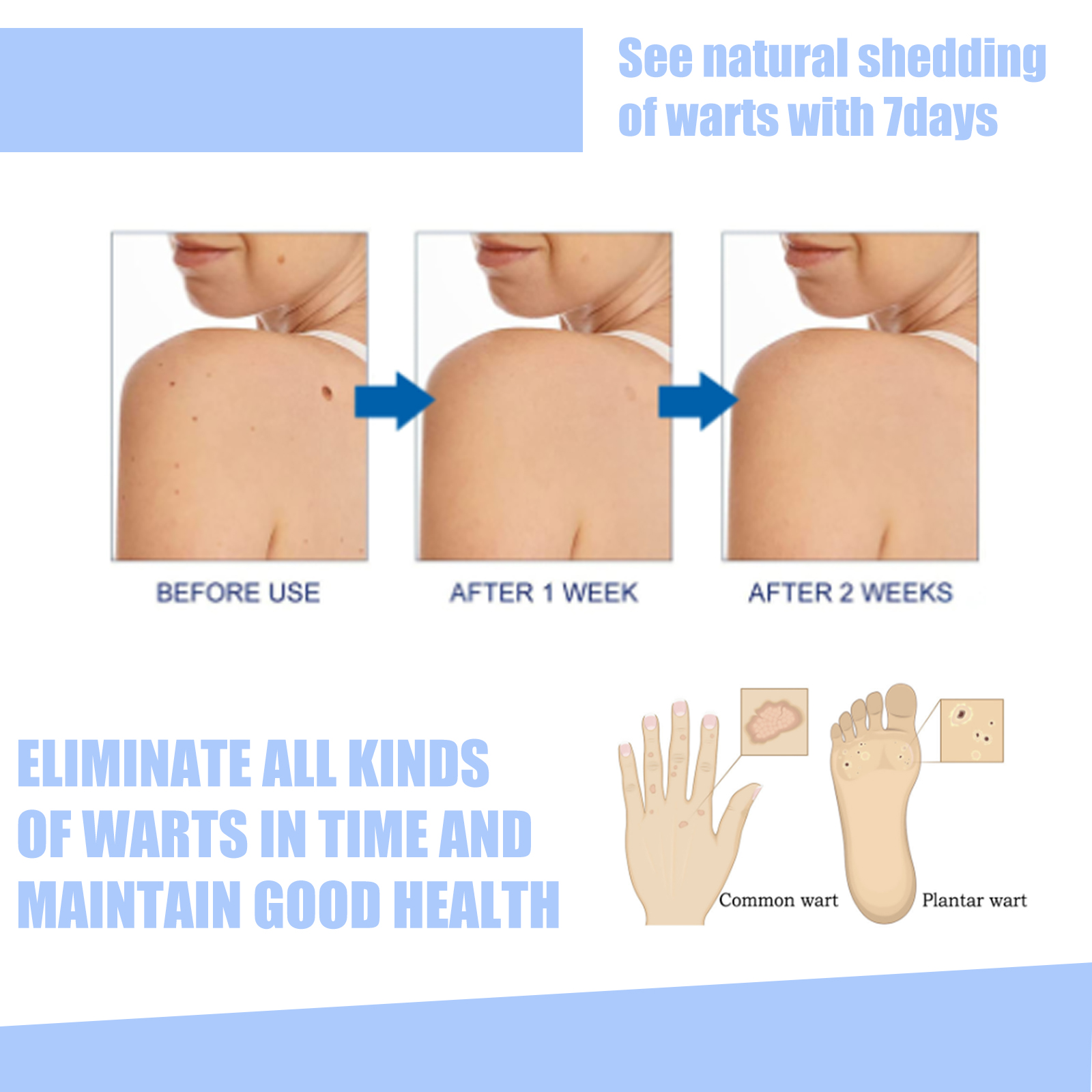 Our wart removal cream contains juniper seed extract, arbutin, witch hazel extract. It can soften dissolved keratin and remove warts; High efficiency directly to the affected area; Eliminate all kinds of warts in time to maintain good health. Its use is simple: wash and dry the affected area, take an appropriate amount of this product, and apply it to the surrounding skin, 2 times a day for better results. Wart removal cream removes warts, dispels moles and removes calluses.