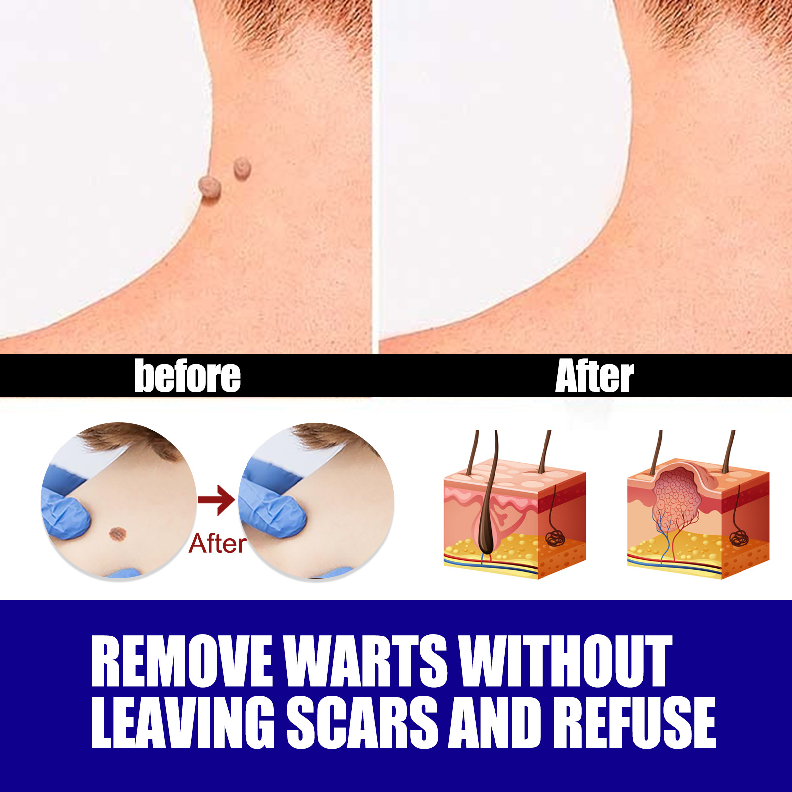 Our wart removal cream contains juniper seed extract, arbutin, witch hazel extract. It can reduce friction on the surface of the wart, thereby reducing irritation caused by movement or contact. Fast and effective, penetrated from the inside of the wart, effective quickly, from the inside out to decompose the wart structure, to provide you with the ideal effect. Its use is simple: 1. Clean and dry the affected area; 2. Apply wart cream; 3. Apply the cream to the surrounding skin to protect healthy skin. 4. Use twice a day to enjoy clean skin. The cream will not cause skin irritation and will not leave scars on lost skin tags, moles or warts. These will fall off naturally.