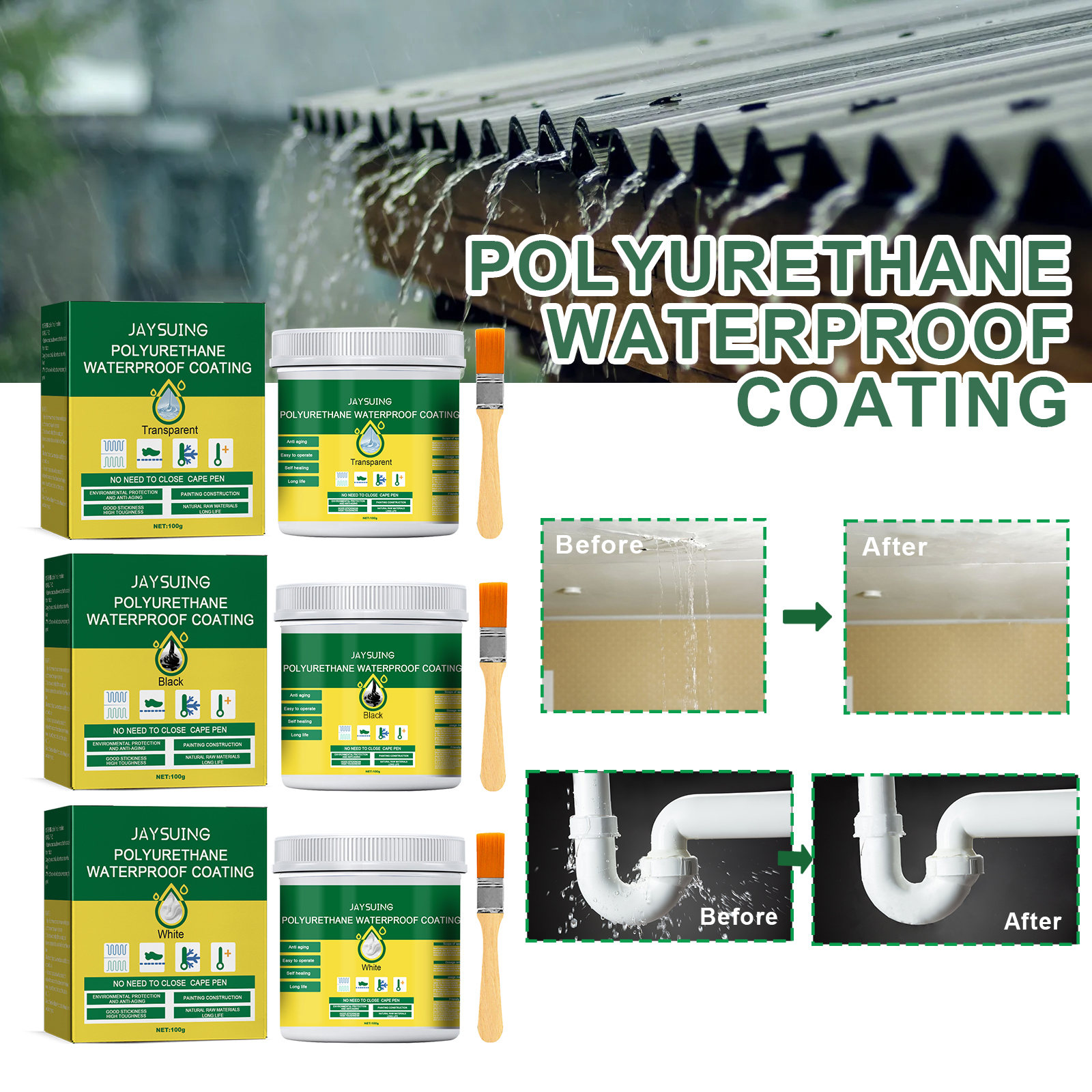 Waterproof Adhesive Roof Bathroom Pipeline Leakproof Transparent Waterproof Coating Wall Paint