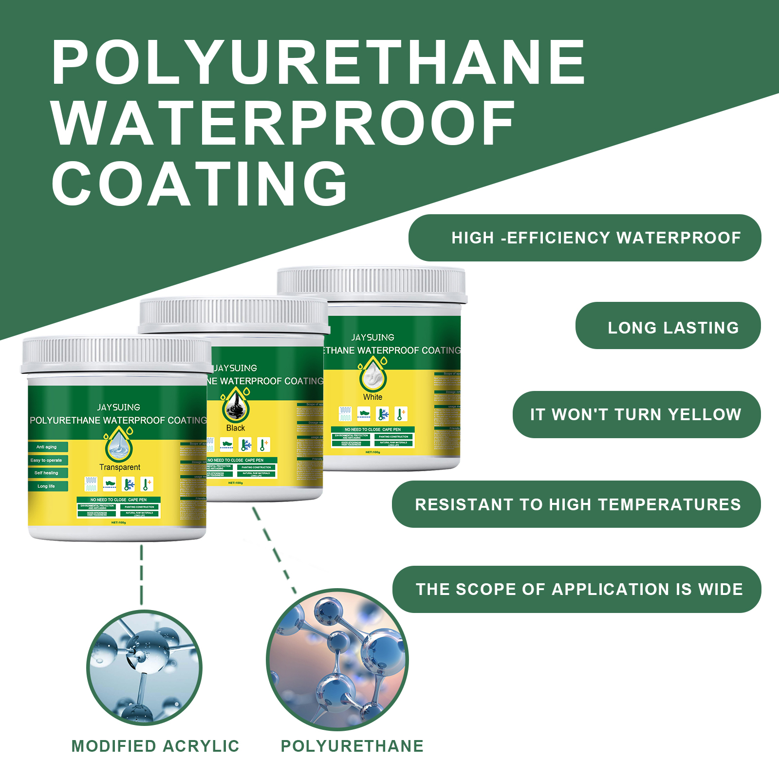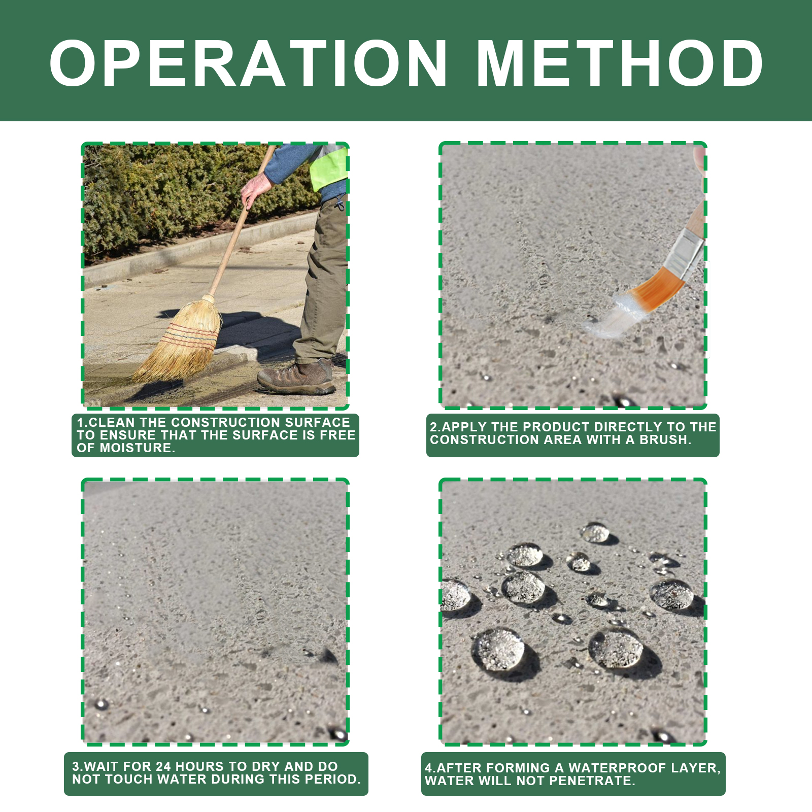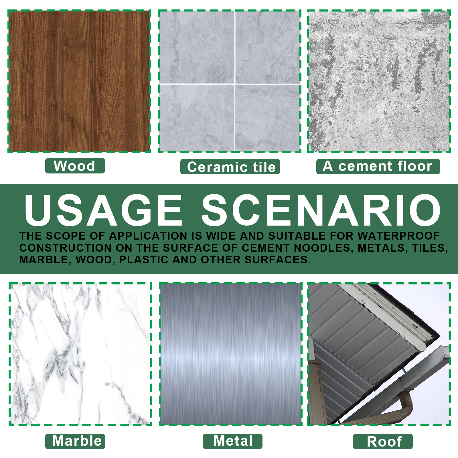 Our waterproof glue contains modified acrylic and polyurethane. It is highly waterproof and can penetrate into the rupture, forming a waterproof layer on the surface. Its use method is very simple: 1. Clean the construction surface to ensure that the surface is free of moisture. 2. Apply the product directly to the construction area with a brush; 3. Allow 24 hours to dry, during which time do not touch water; 4. After the formation of waterproof layer, water will not penetrate. Wide range of application, suitable for cement surface, metal, tile, marble, wood, plastic surface waterproof construction.