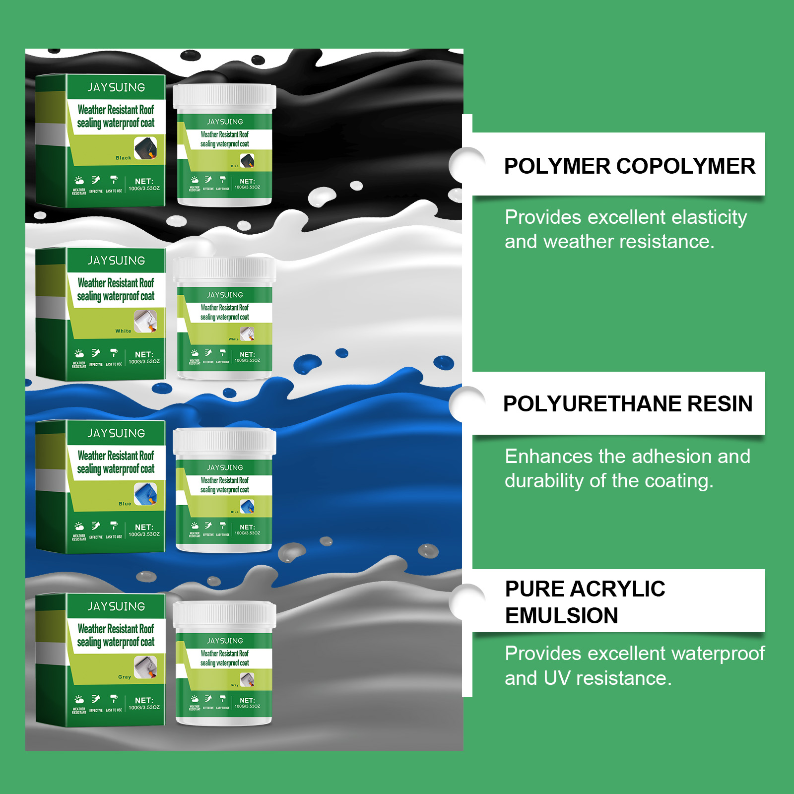 Our weather-resistant roof sealing waterproof coating contains pure acrylic emulsion and silicone acrylic emulsion. It can withstand high temperature, ultraviolet resistance, long-term. Its use method is very simple: first clear the roof of the house and the roof of the dust and gravel, with a brush to take an appropriate amount of this D product, evenly coated on the roof floor, and so it dry naturally. And has a strong weather resistance can withstand high and low temperatures, even in bad weather can prevent leakage.