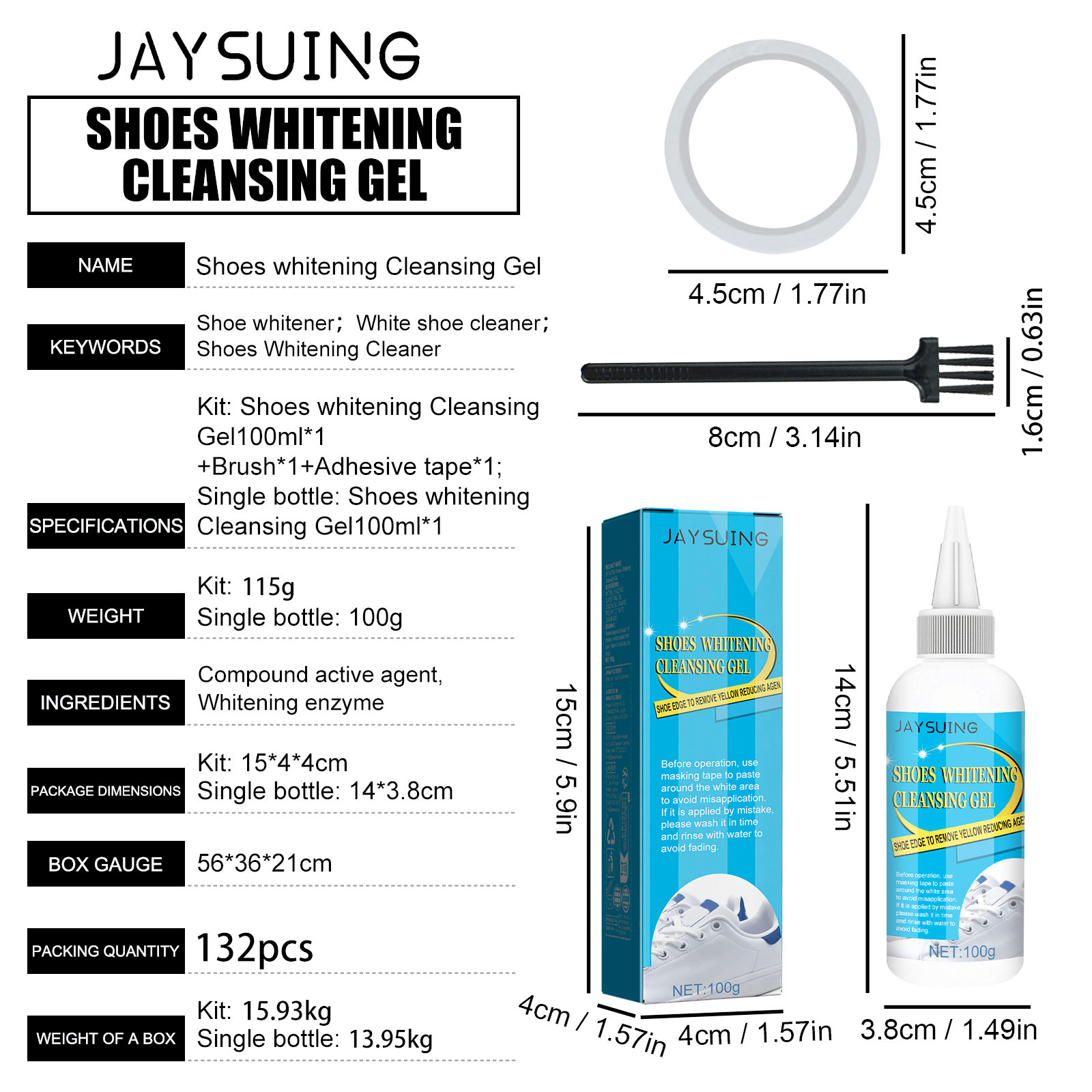 Our shoe edge yellow cleaner contains complex active agents, whitening enzymes. It can foam decontamination, rich foam penetration, deep dissolution of stains, add active decontamination ingredients, fast stain removal, fast whitening. Its use method is very simple: 1. Before operation, please tape the surrounding white area well to avoid misuse. 2. Apply appropriate amount of this product to the stain on the shoe, and then evenly apply it with a brush. 3. Wait 3-5 minutes. Wipe it off with a towel. 4. It's done. Remove yellow cleaner on the side of your shoes to quickly whiten oxidized and discolored areas, making your shoes look new every day.