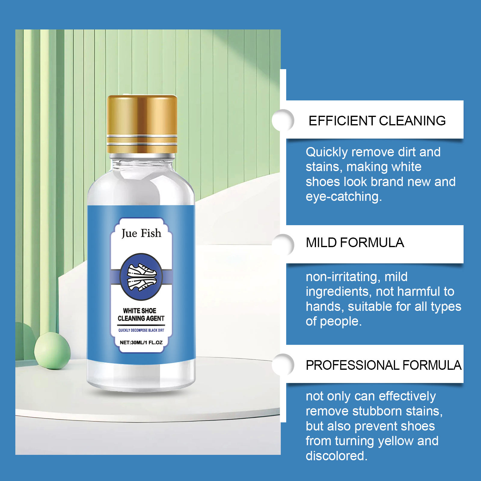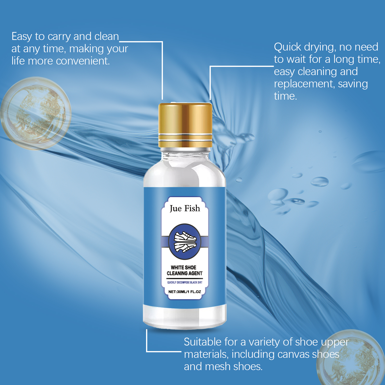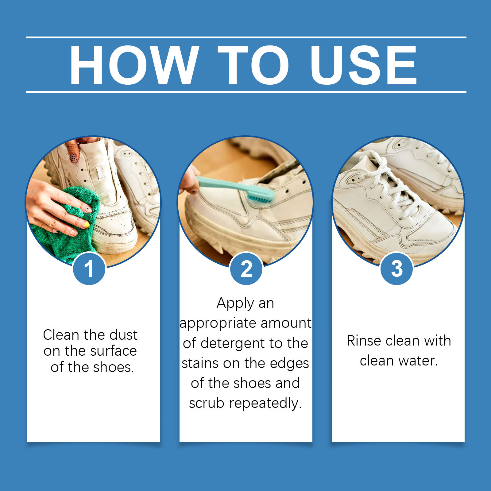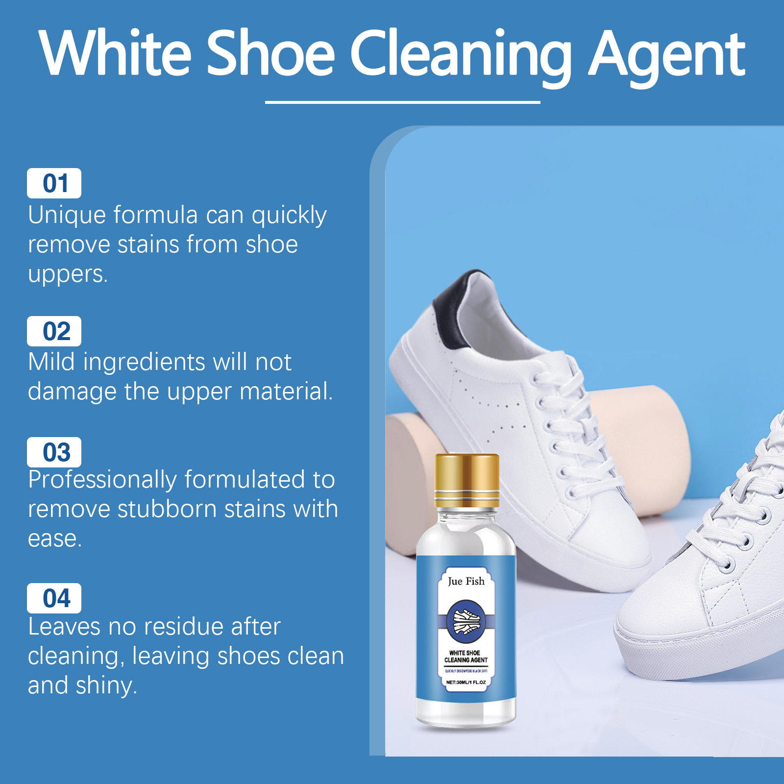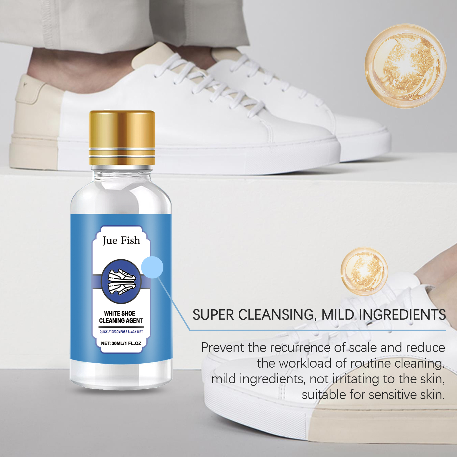 Our white shoe cleaner contains phenoxyethanol, lysozyme, turpentine. It can prevent the upper from fading and extend the service life of the shoe. Remove dirt and stains quickly and give white shoes a new look. Its use method is very simple: 1. Wipe the dust on the shoe surface. 2. Apply appropriate amount of cleaning agent to the stain on the side of the shoe and scrub repeatedly; 3. Rinse with water. Not only can effectively remove stubborn stains, but also prevent shoes from turning yellow and discoloration. Non-irritating, mild ingredients, harmless opponents, suitable for all kinds of people.