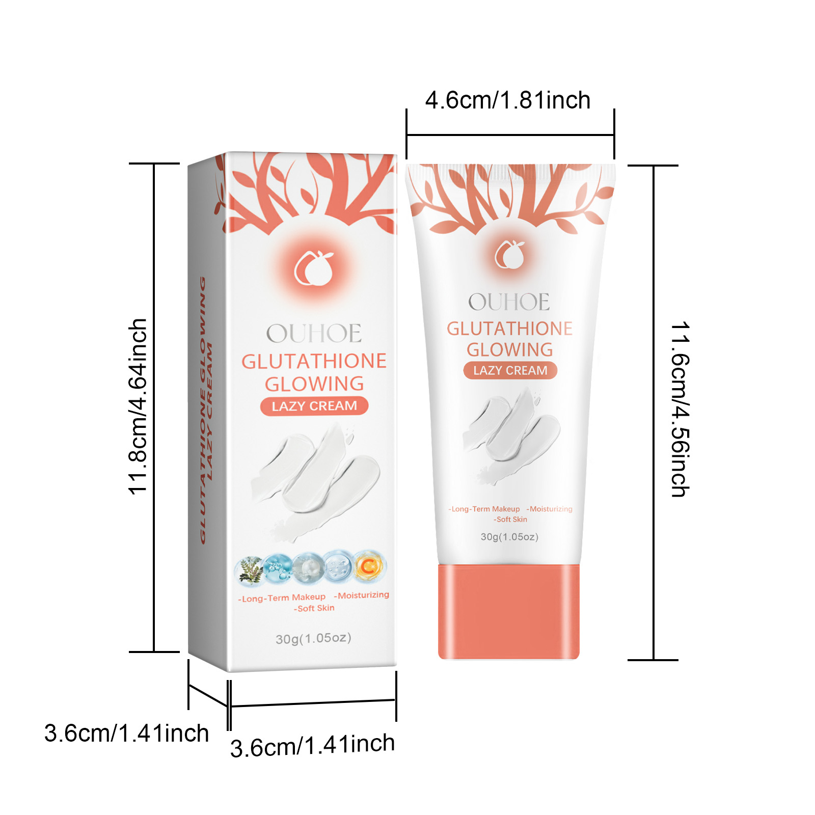 Our Glutathione Glowing Lazy Cream contains licorice extract, glutathione, and niacinamide. It can inhibit melanin from the source, accelerate melanin fading, block the transfer of melanin, and effectively brighten the skin. Its application method is very simple: after cleansing, take a proper amount of cream evenly apply to the skin, gently massage until absorbed. It can improve dull skin, repair and fade acne marks, make your skin more shiny, whitening and moisturizing, and moisturize skin for a long time.