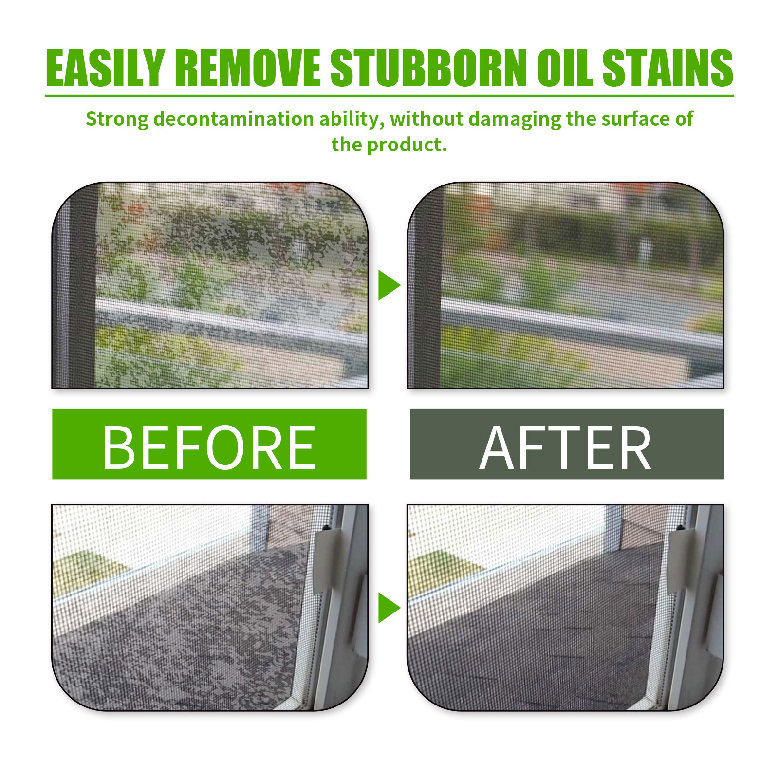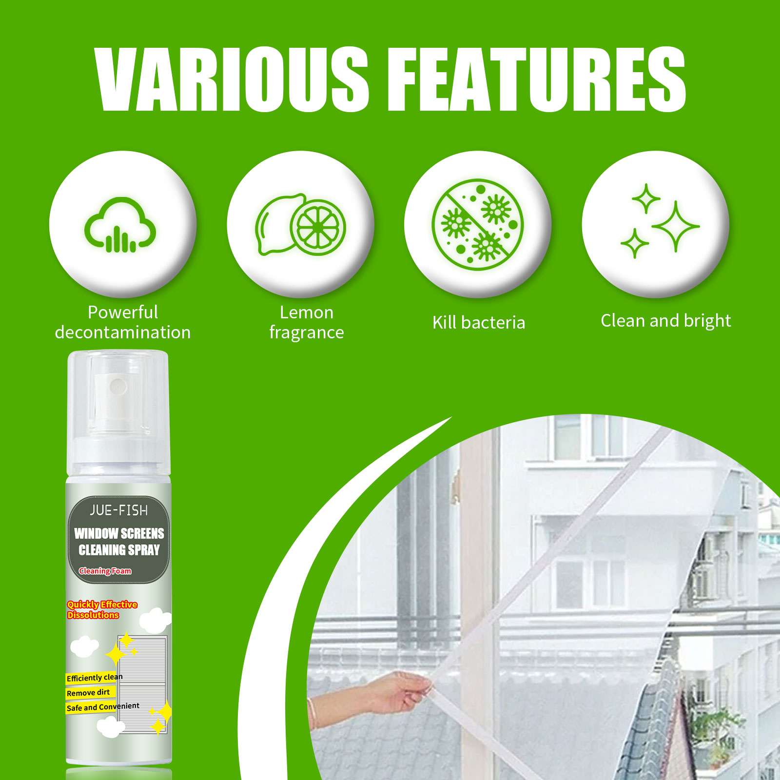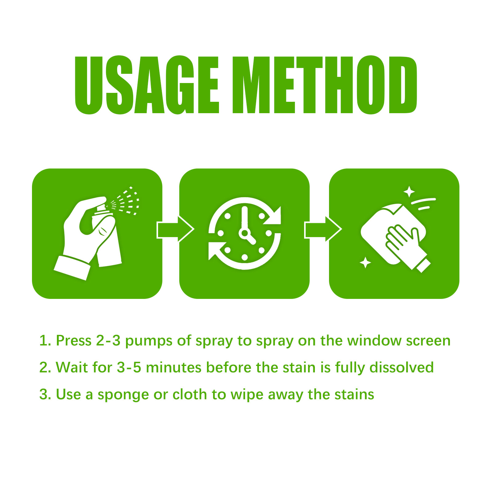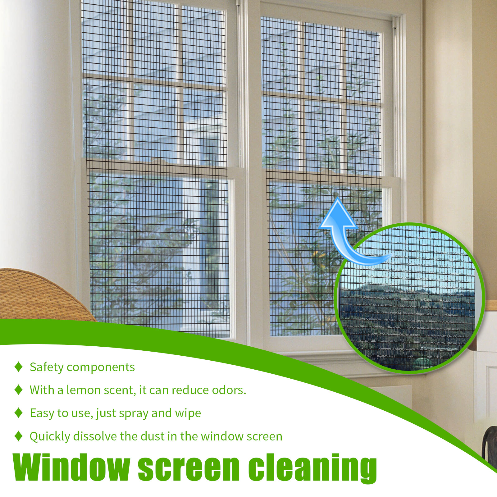 Our window cleaning sprays contain baking soda, lemon extract and orange peel extract. It can quickly dissolve the dust on the window screen, while reducing the window odor, it is very convenient to use. Its use method is very simple: first press 2-3 sprayer pump, spray the spray on the window screen, then wait 3-5 minutes, the stain will be completely dissolved, and finally wipe the stain with a sponge or cloth. After use, it can perfectly remove stubborn stains on the window, kill bacteria, remove odors, and make the window brighter.