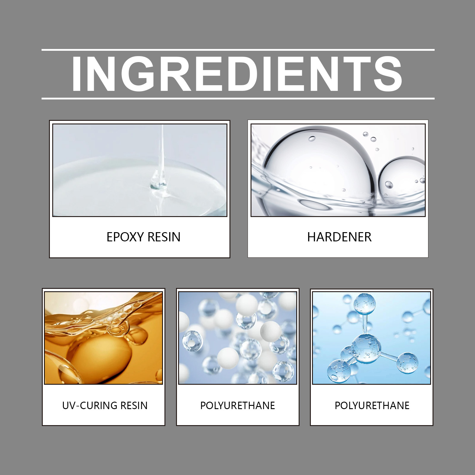 Our windshield repair adhesive contains polyurethane, silane coupling agent. It can provide long-term maintenance effects, extend the service life of the windshield and reduce replacement costs. Its use method is very simple: clean and dry the damaged area of the windshield, drop glue on the cracks on the glass, attach a curing film in the sun for 5 minutes, and finally, clean the residual resin on the surface with a blade. And it can effectively prevent the further expansion of cracks, ensure the integrity of the windshield structure, and avoid a wider range of damage.