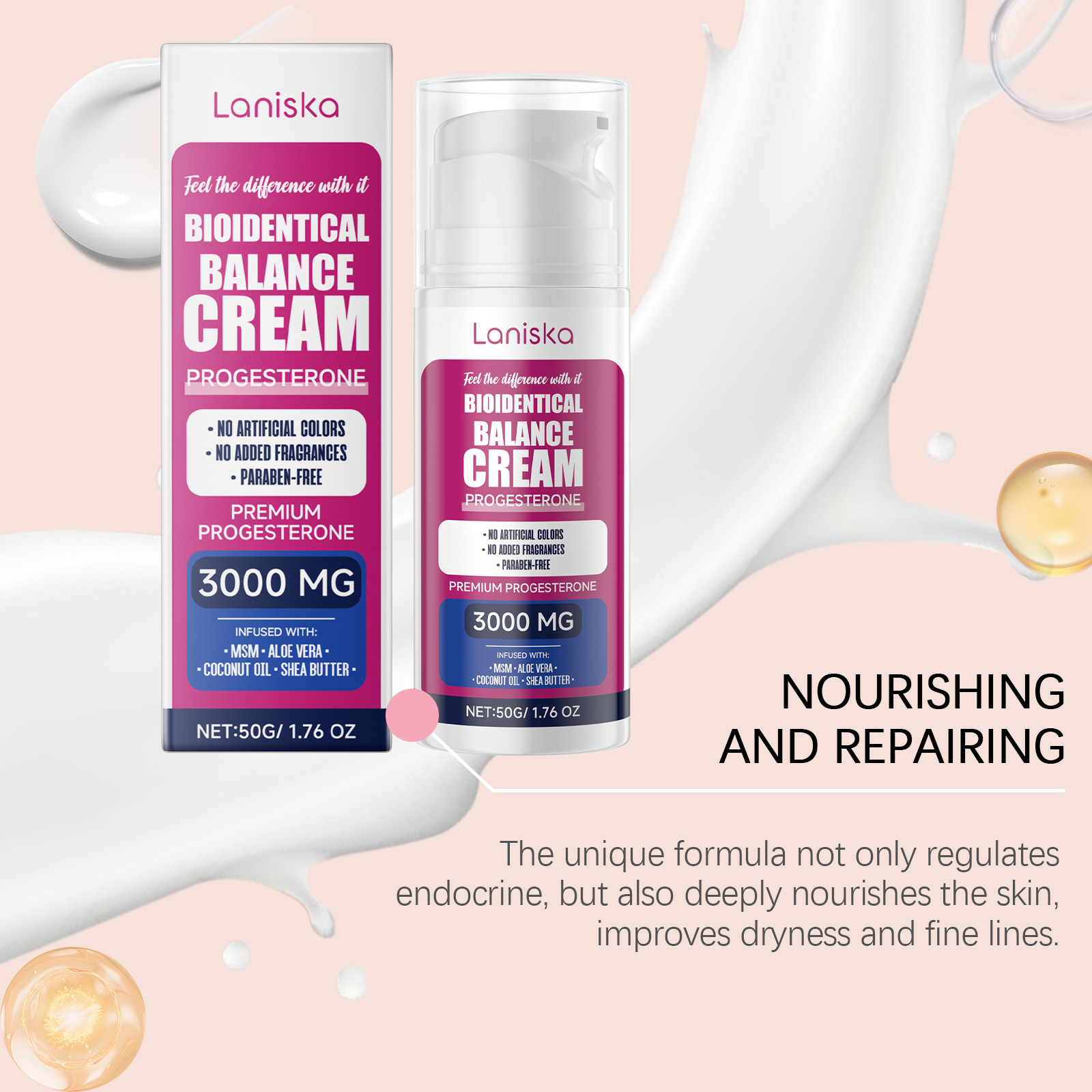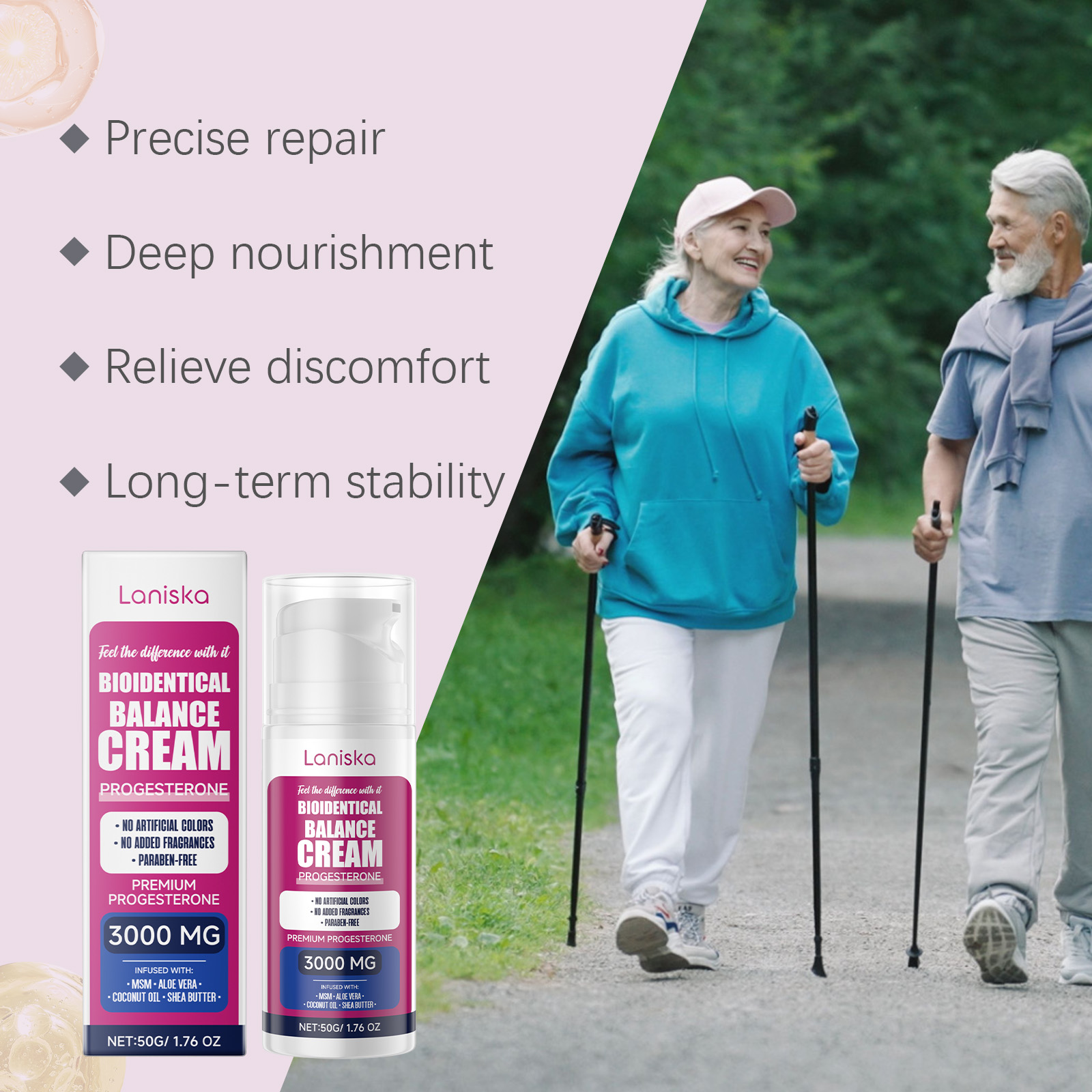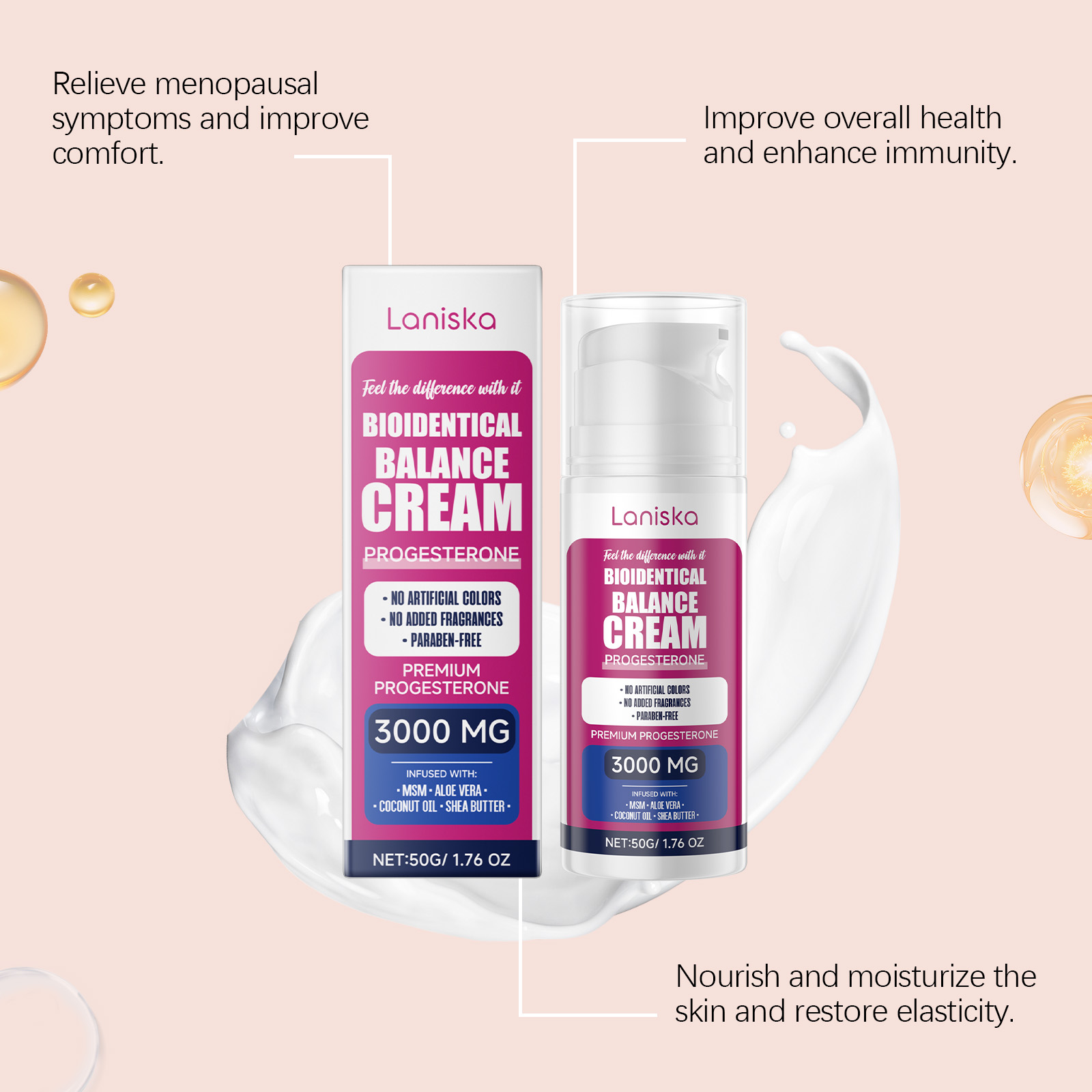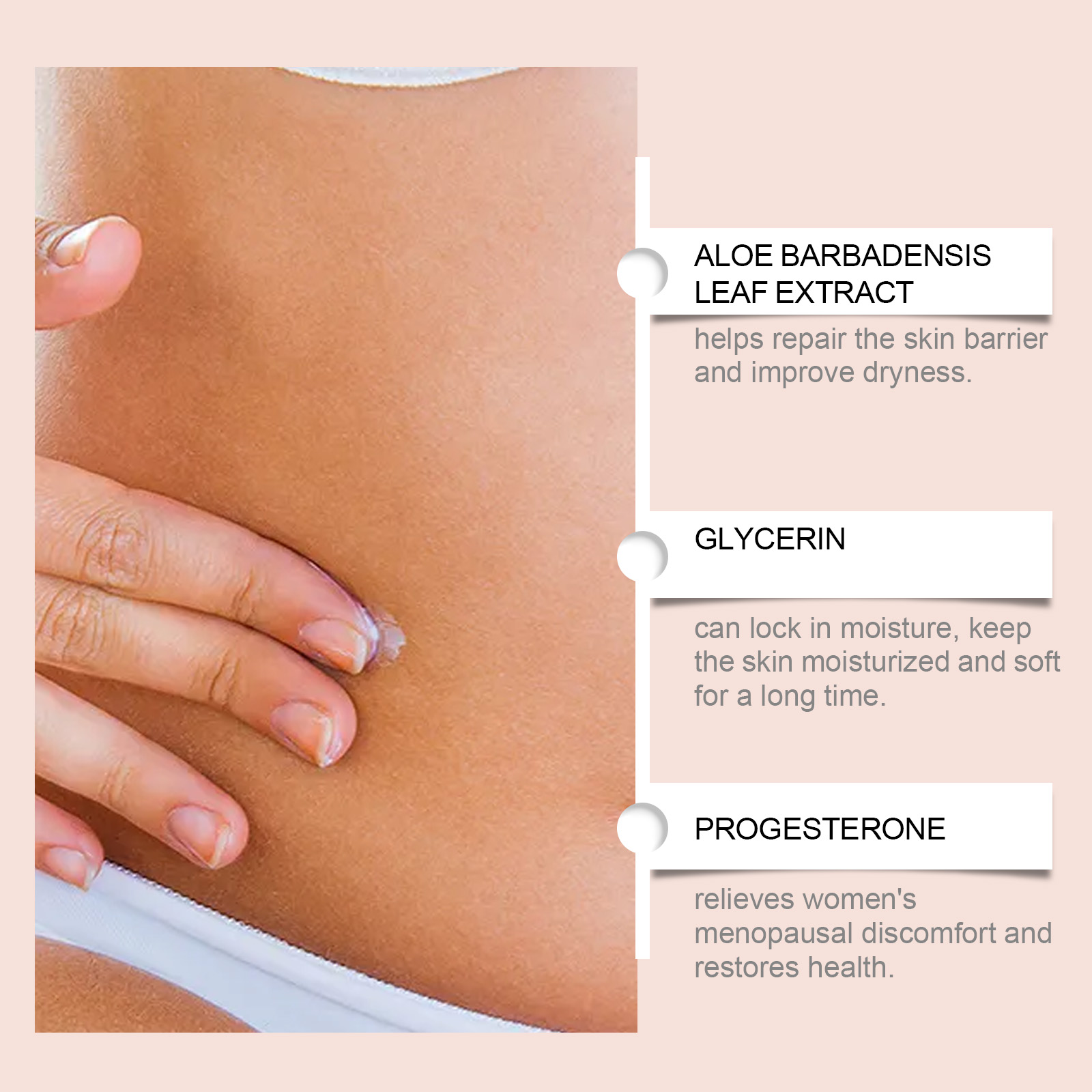 Our women's cream contains aloe vera leaf extract in Curacao. It can help promote progesterone balance in the body, relieve menopause symptoms, and maintain overall health. Effectively relieve menstrual discomfort caused by progesterone imbalance, such as low mood, insomnia and so on. Its use is simple: Apply an appropriate amount of this product evenly to the body skin and gently massage to promote better absorption. And can promote progesterone balance, regulate body function.