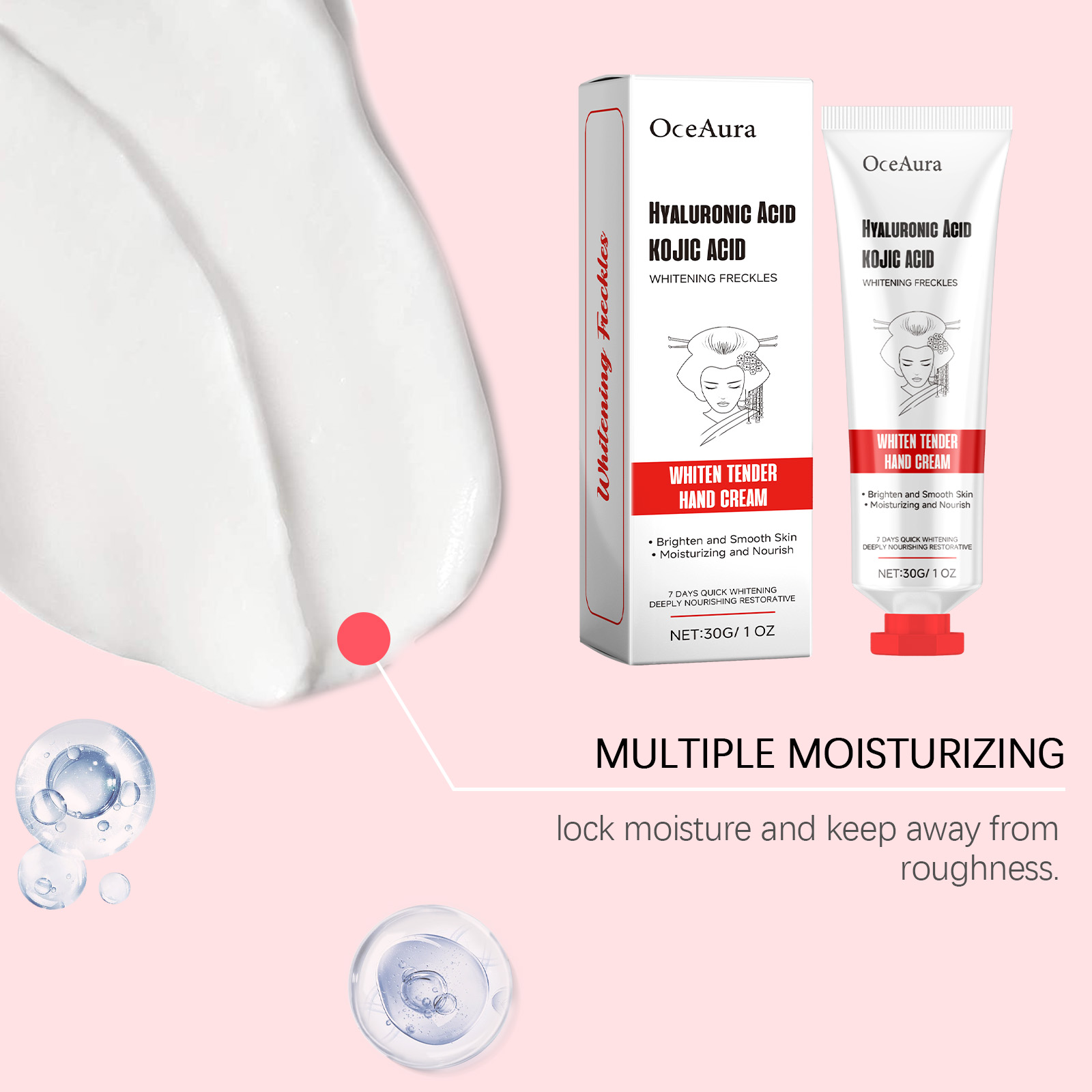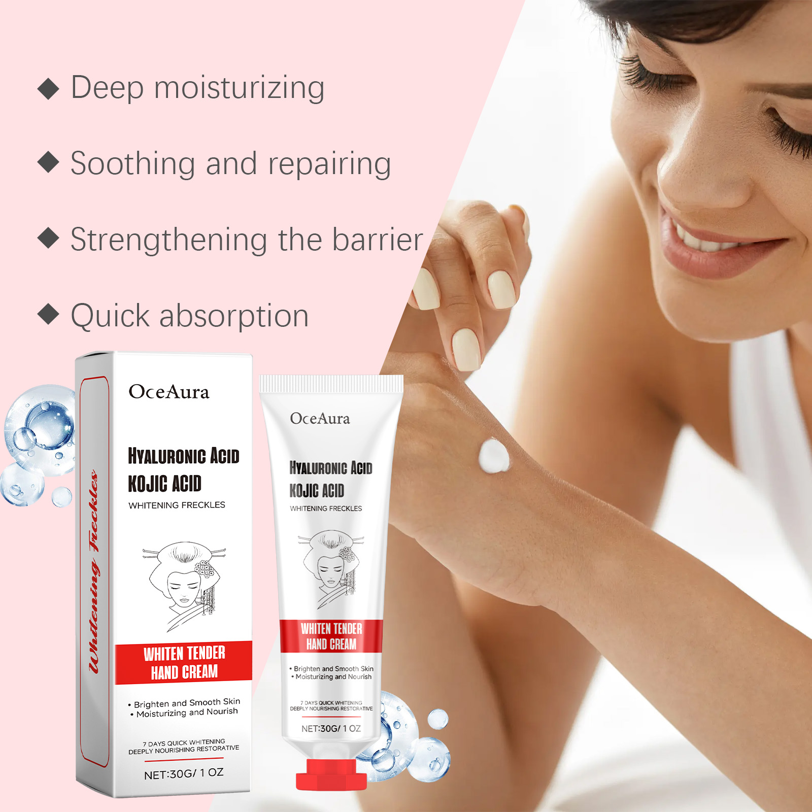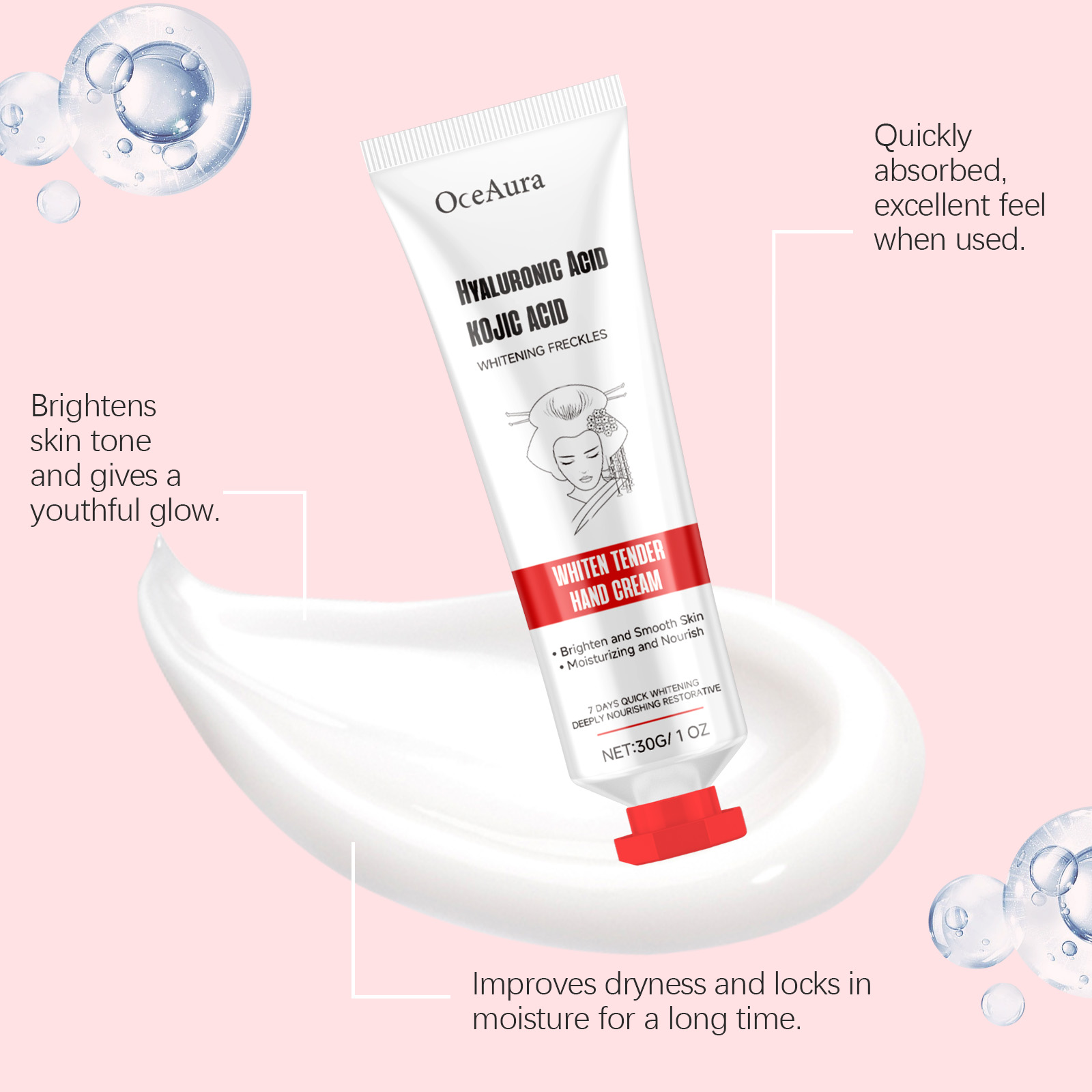 Our women's hand cream contains glycerin, niacinamide and hyaluronic acid. It can show a bright and even skin tone. Make hands soft and smooth as silk. Its use method is very simple: clean hands, keep hands dry, take appropriate amount of this product on hands. Gently massage until absorbed. It can also deeply moisturize and maintain water balance.