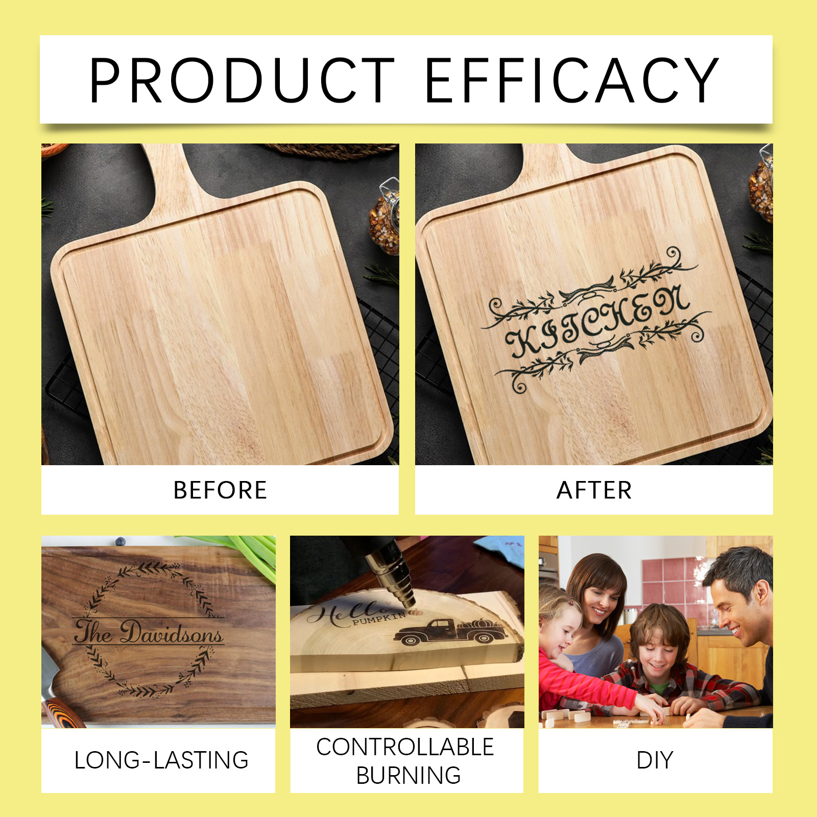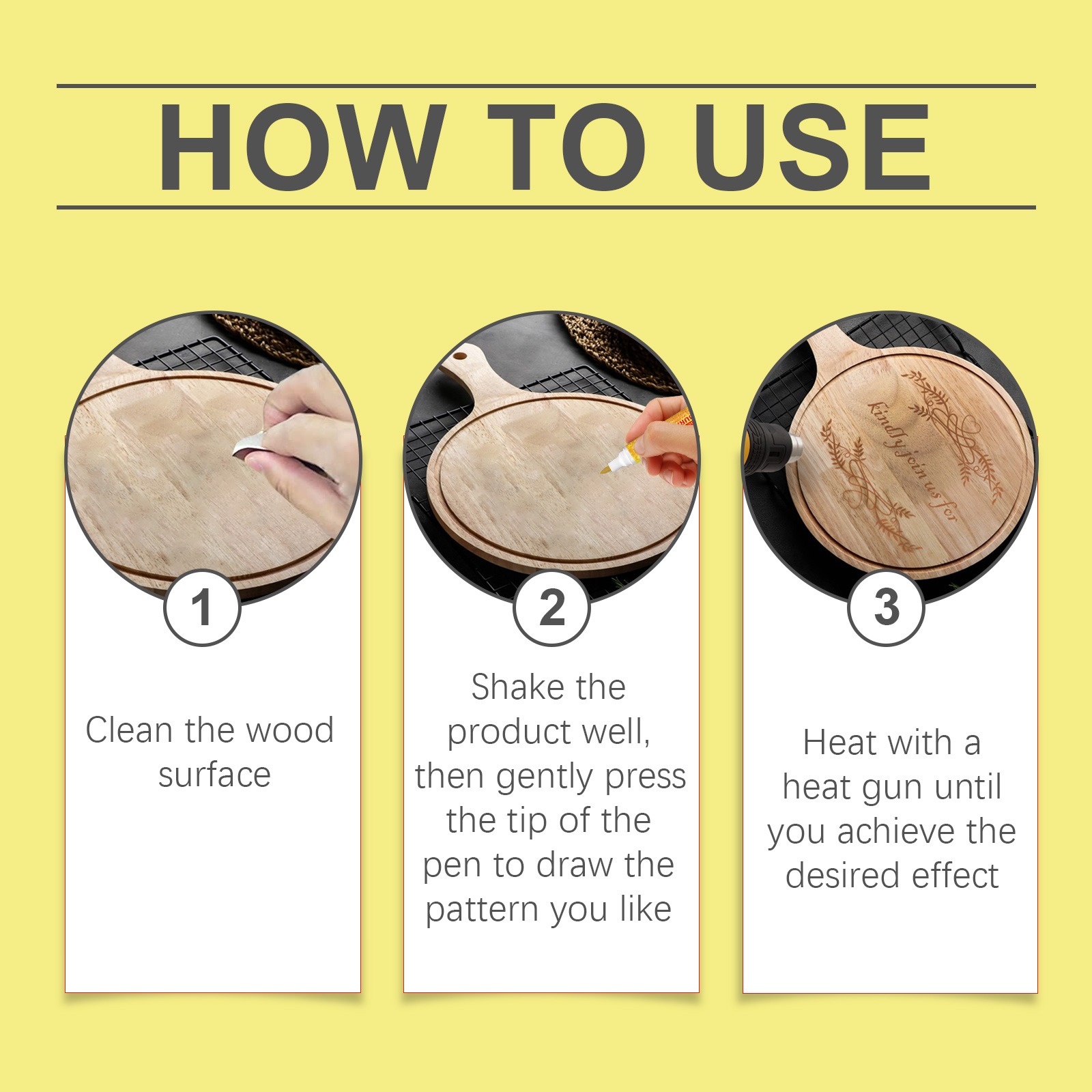 Our wood burn pens contain talc powder, stabilizer. It can meet different painting needs. Perfectly integrated into the creative fields of carpentry, handicrafts and so on. Unique gift selection, the best gift for woodworking enthusiasts. Its use method is very simple: clean the surface of the wood, shake the product well and gently press the tip of the pen, draw your favorite pattern, and heat it with a heating gun until the desired effect is achieved. And can be portable and lightweight, anytime, anywhere creation. The entire creative process can be done independently without the need for additional tools.