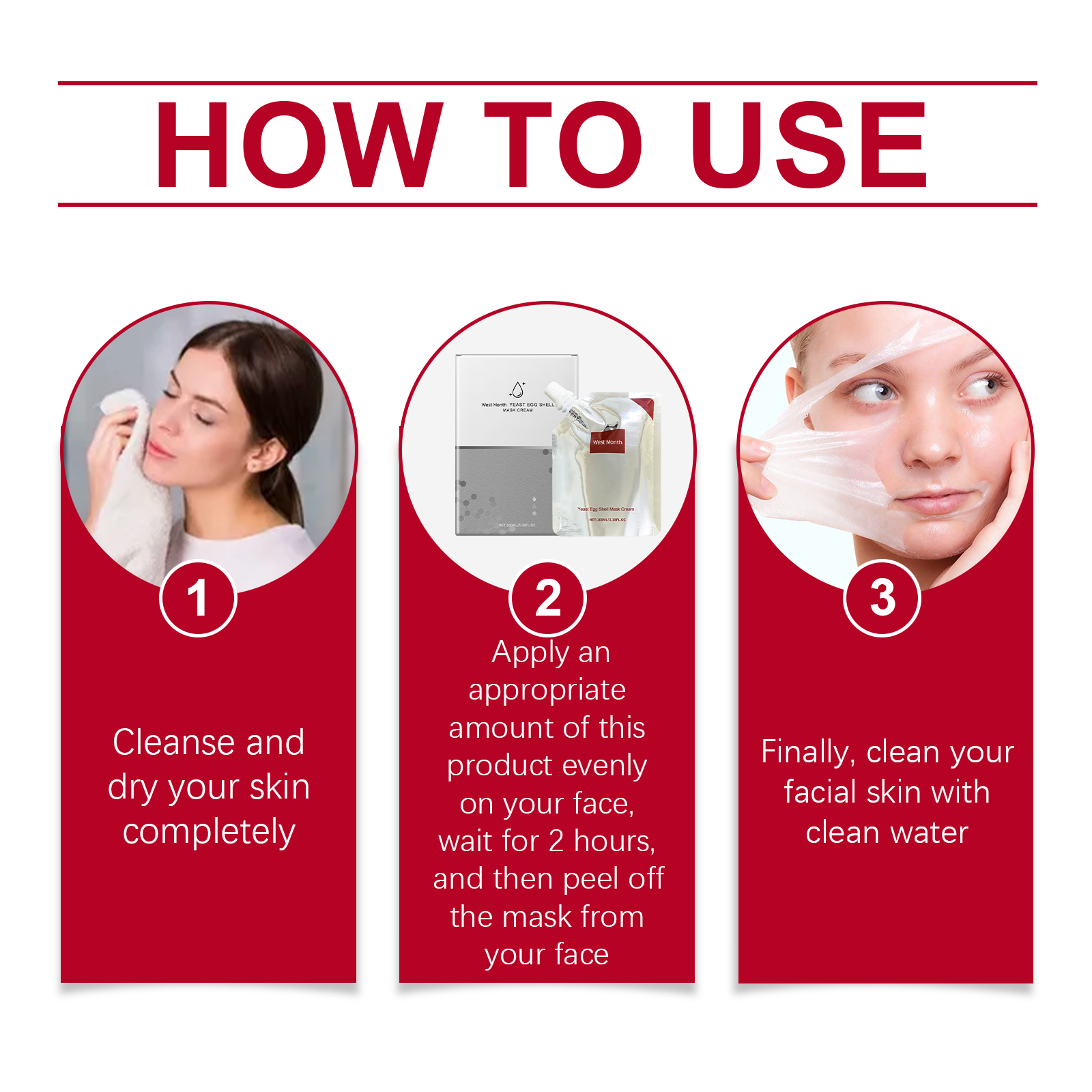 Our yeast eggshell Peel mask contains lemon fruit extract and hyaluronic acid. It can effectively remove impurities and dead skin cells, leaving the skin rejuvenated. The way to use it is very simple: thoroughly clean and dry your skin, apply an appropriate amount of this product to your face, wait 2 hours, then remove the mask from your face, and finally, clean your face with water. And suitable for all skin types, including sensitive skin.